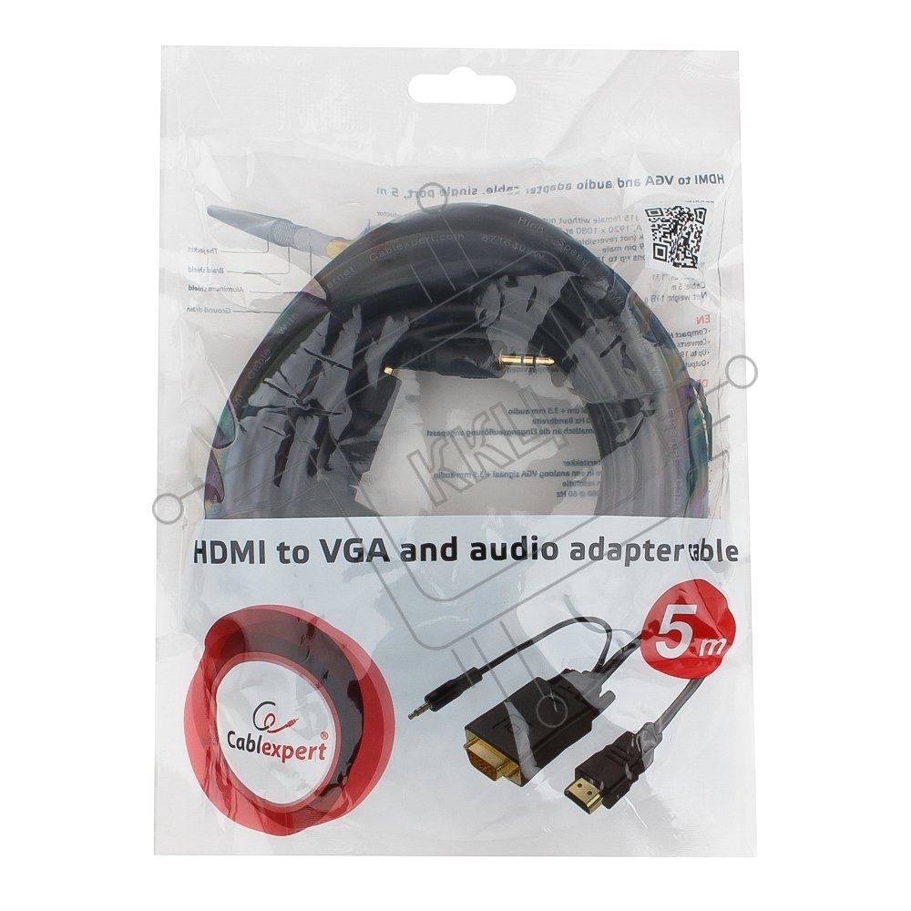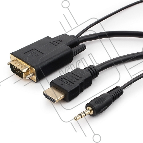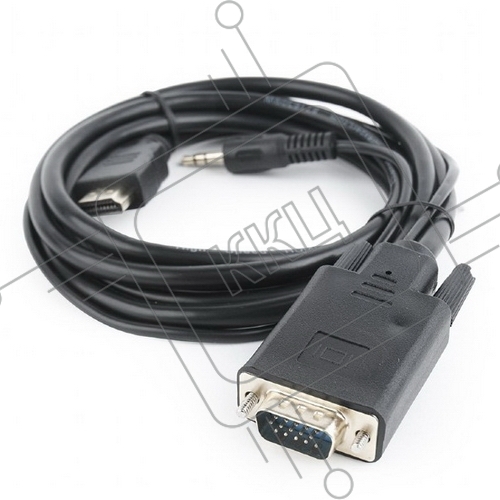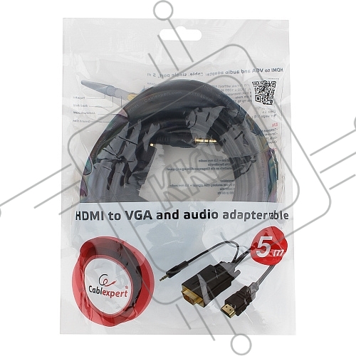Кабель HDMI->VGA Cablexpert A-HDMI-VGA-03-5M, 19M/15M + 3.5Jack, медь, позол.разъемы, 5м, черный, пакет