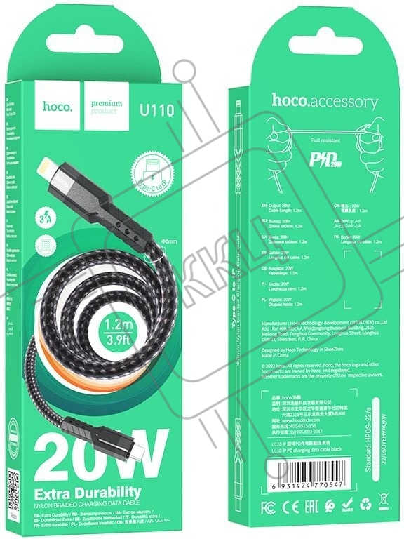 Кабель Hoco U110 iP PD USB Type-C (m)-Lightning (m) 1.2м черный коробка