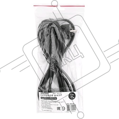 Кабель Кабель питания Gembird 3.0м, черный, с заземлением, пакет PC-186-10