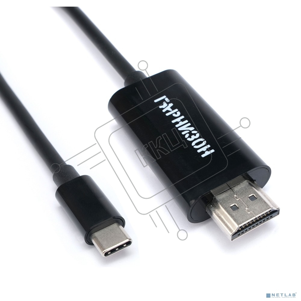Кабель-переходник с Type-C на HDMI Гарнизон GCC-A-CM-HDMI-1.8M, v1.4, 1.8м, черный, пакет