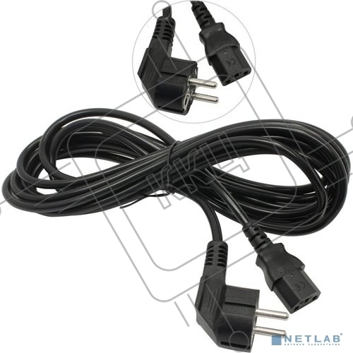 Кабель питания ExeGate Power PC-5P (Евровилка угловая Schuko->С13) VDE-250V-3*1.0-CU, 10A, 5м