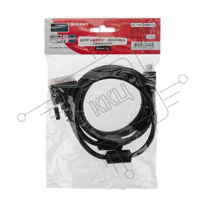 Кабель Rexant ШнурHDMI - DVI-Dgold1.5Мс фильтрами