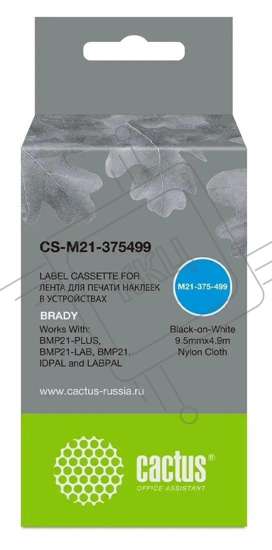 Картридж ленточный Cactus CS-M21-375499 черный шрифт, белый фон (9.5 мм, 4.9 м) для Brady BMP21-PLUS, BMP21-LAB