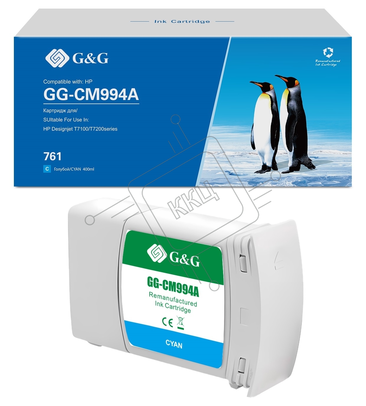 Картридж струйный G&G GG-CM994A 761 голубой (400 мл) для HP Designjet T7100/T7200