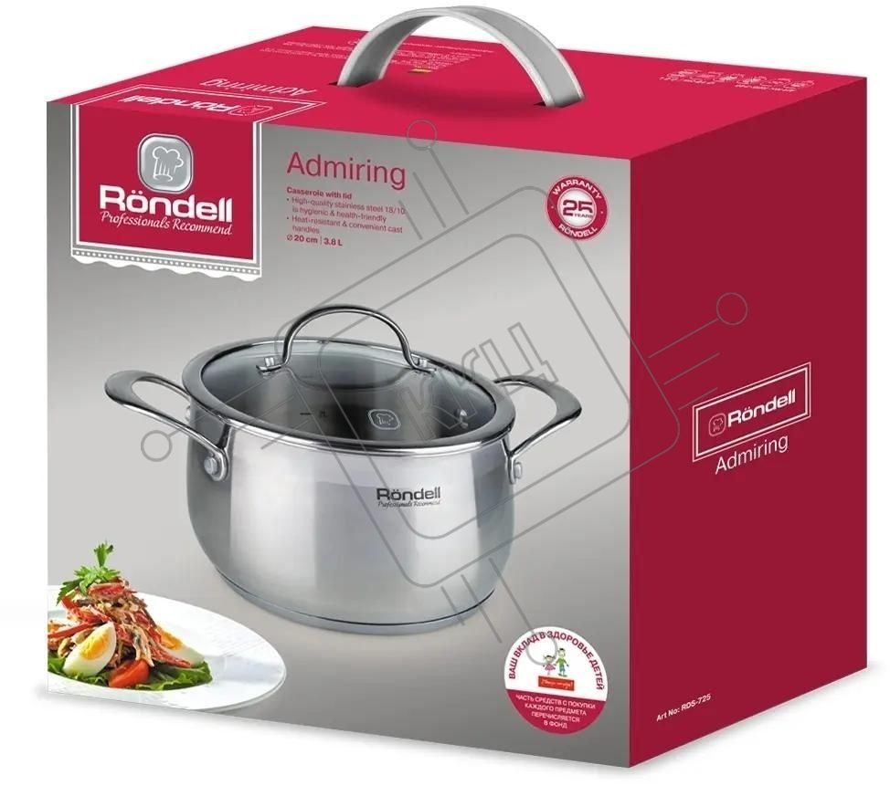 Кастрюля Rondell Admiring RDS-725, 3.8л, 20см, с крышкой, сталь