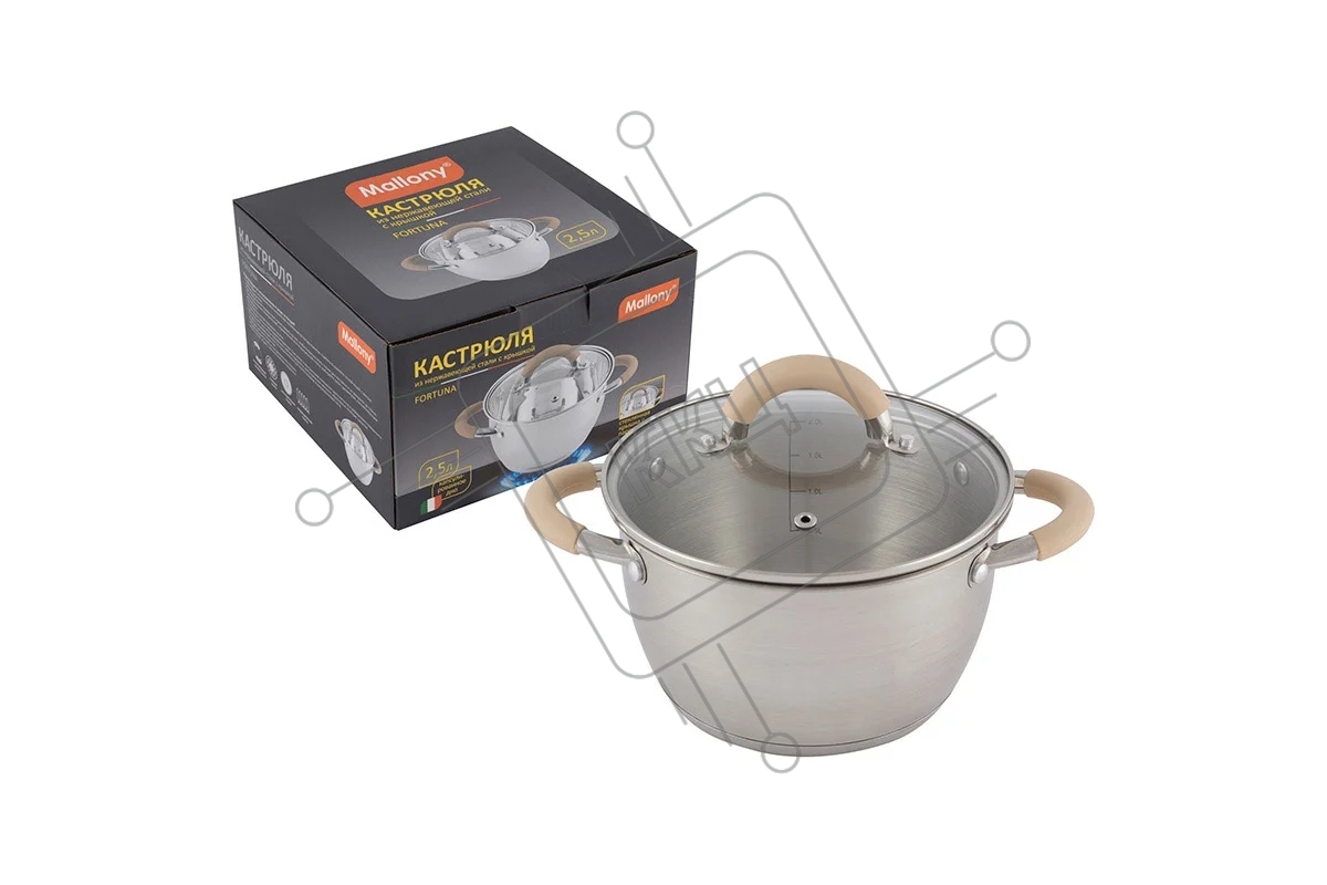 Кастрюля MALLONY Fortuna нержавеющая сталь, со стеклянной крышкой, матовый корпус ручки с силиконом, 2,5 л