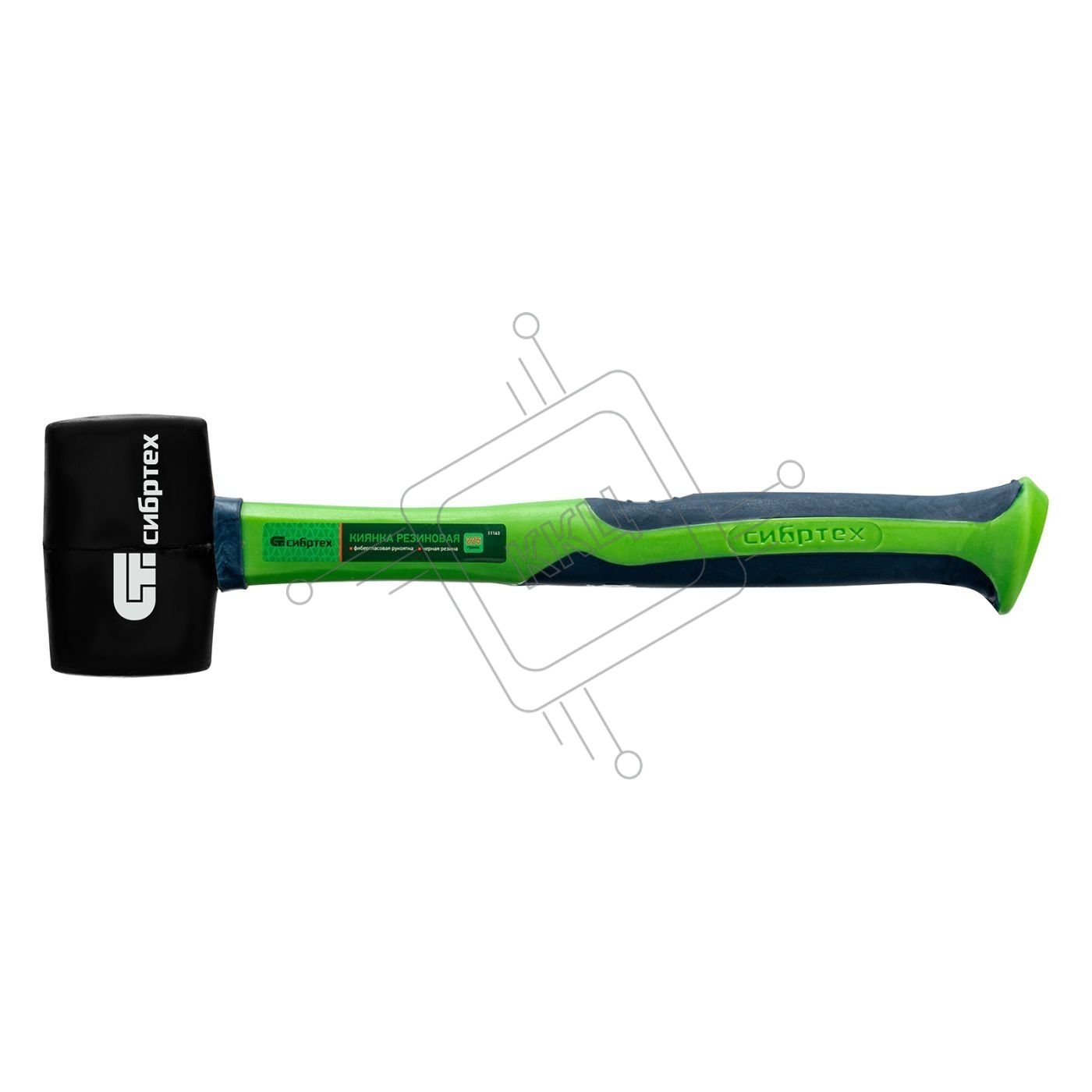 Киянка резиновая Сибртех 225г, черная резина, фибергласовая рукоятка