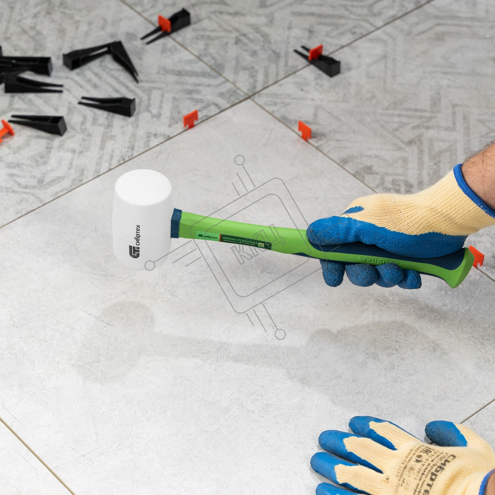 Киянка резиновая Сибртех 450 г, белая резина, фибергласовая рукоятка