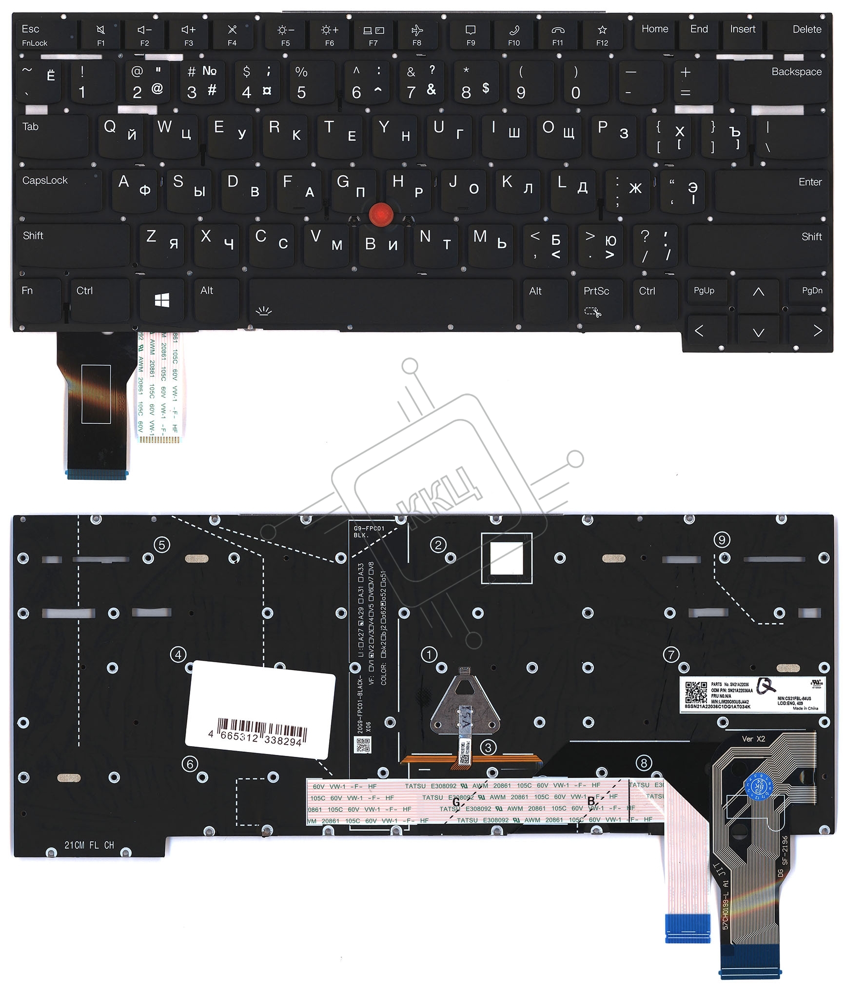 Клавиатура для ноутбука Lenovo ThinkPad T14s gen 2 черная с подсветкой