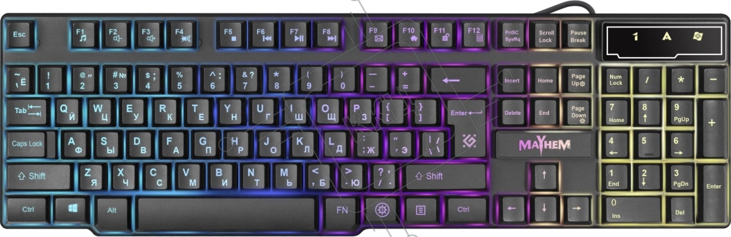 Клавиатура Defender Mayhem GK-360DL RU [45360] {, RGB подсветка, 19 Anti-Ghost}