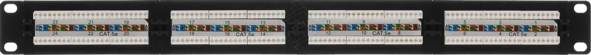 Патч-панель 19", кат. 5е, 1U, 24 порта UTP, с возможность установки заднего органайзера