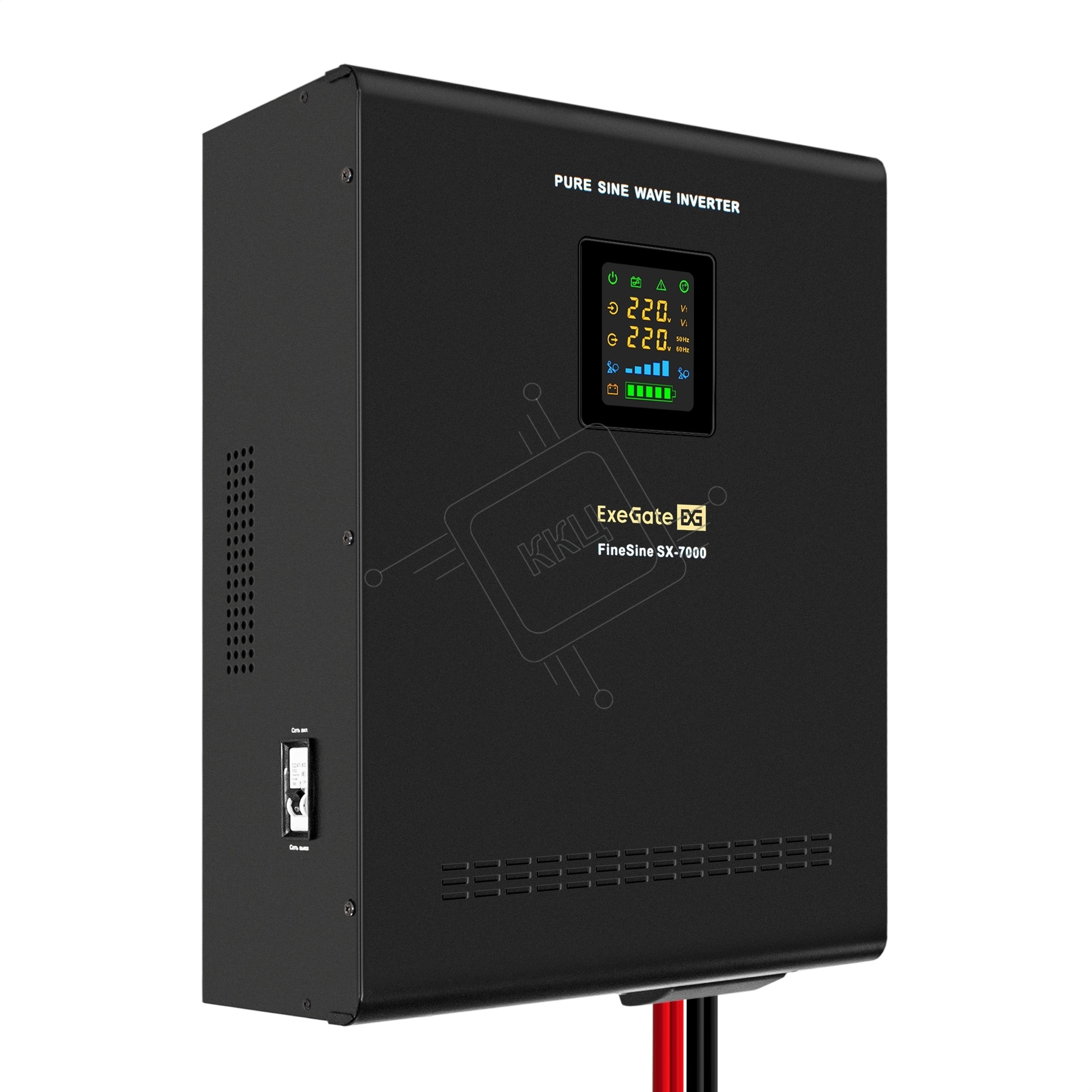Источник бесперебойного питания (инвертор, синус, для котла, настенный) ExeGate FineSine SX-7000.LCD.AVR.2SH.T <7000VA/5000W, чистая синусоида, цветной LCD-дисплей, AVR, 2*Schuko+клеммы, линейно-интерактивный, внешняя батарея 48В до 200Ач (поставляется от