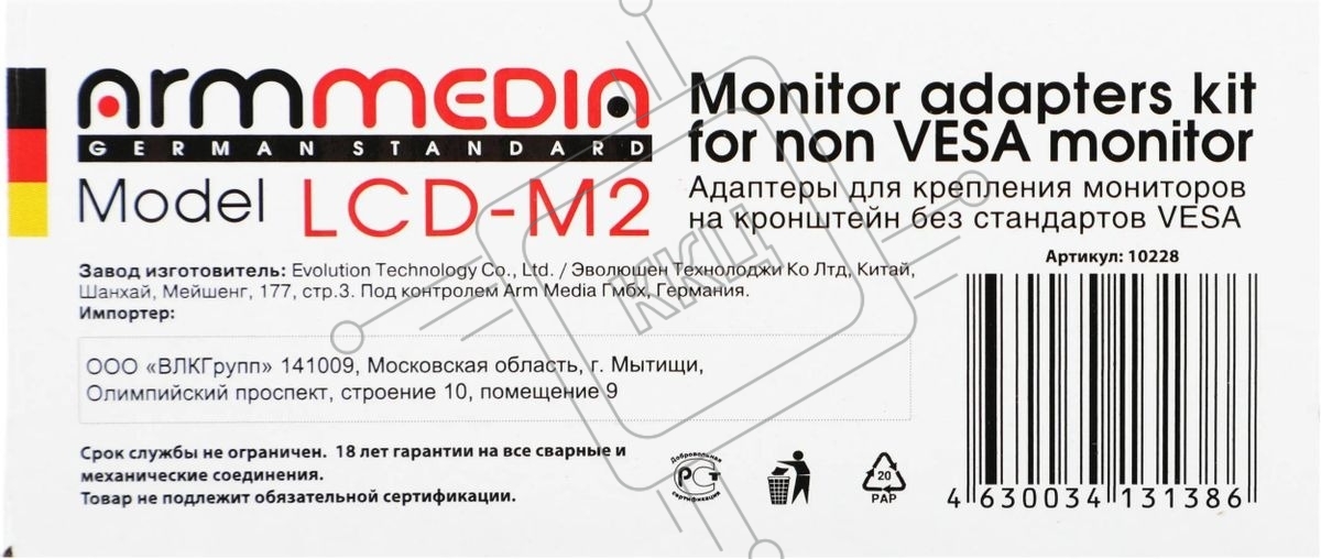Кронштейн-адаптер для мониторов Arm Media LCD-M2 черный макс.7кг настольный поворот и наклон верт.перемещ.