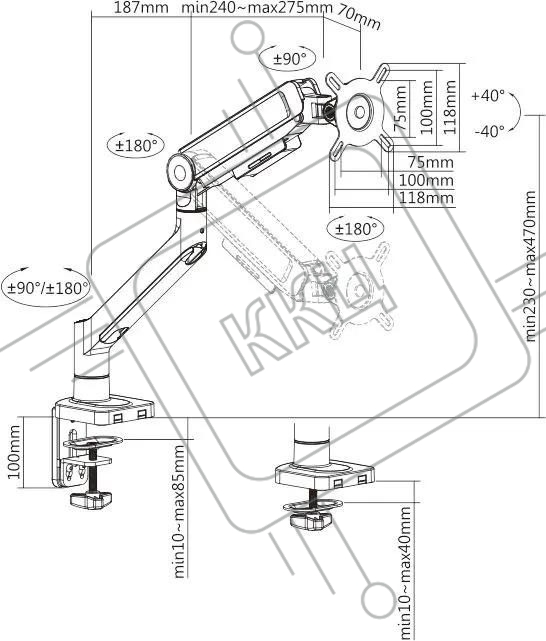 Кронштейн для мониторов Ultramounts UM732W белый/коричневый 17"-32" макс.8кг крепление к столешнице поворот и наклон