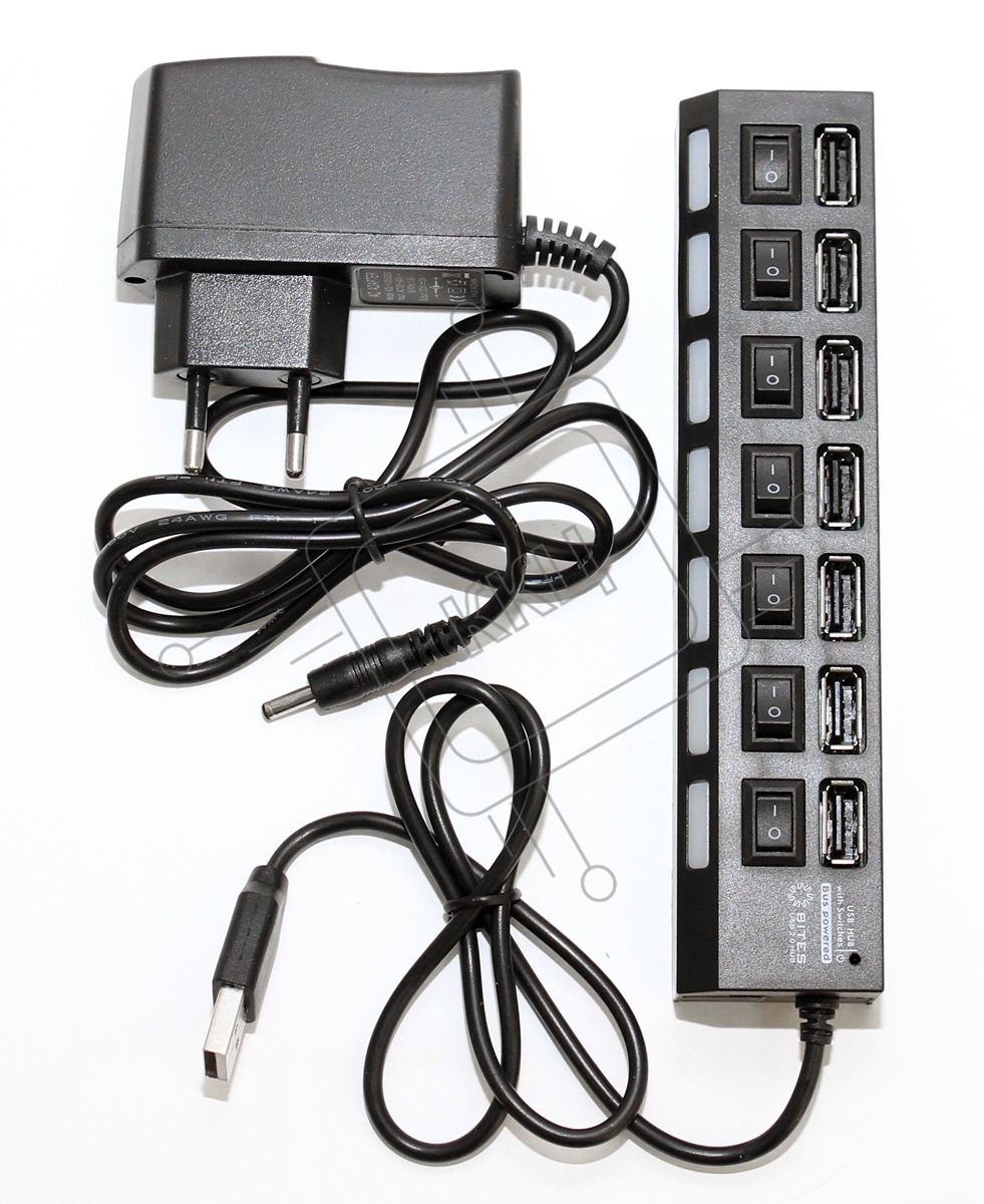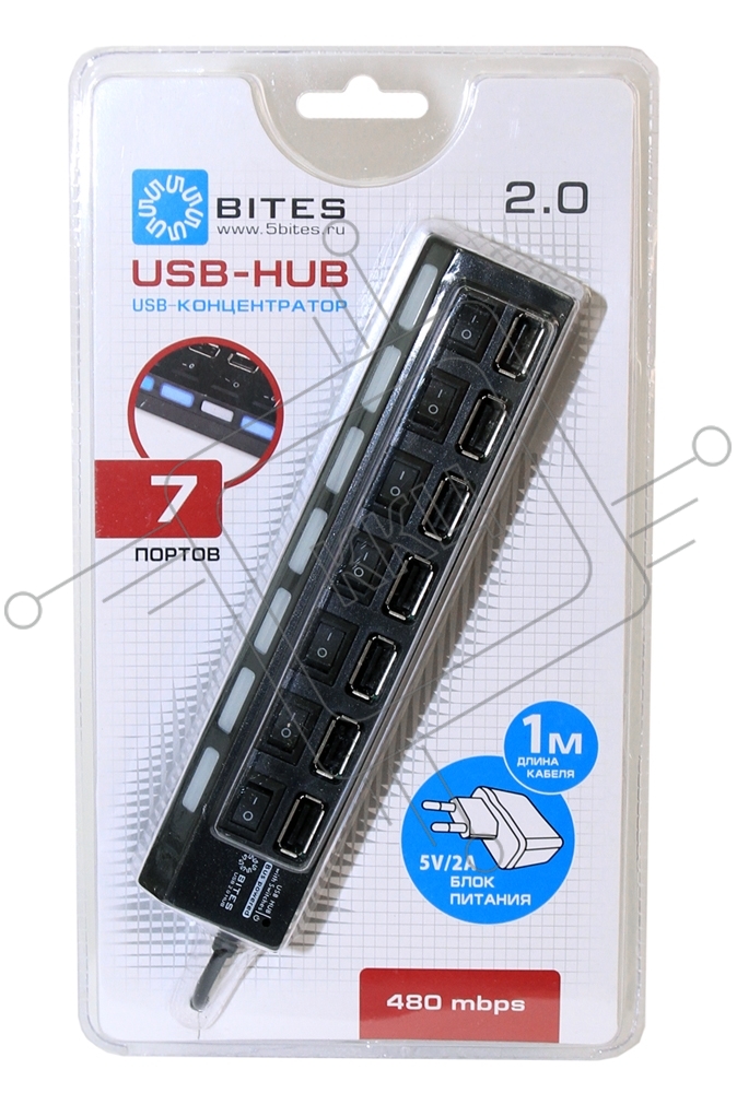 Концентратор USB 5bites HB27-203PBK 7*USB2.0 / БП 5В-2А / 1M / черный