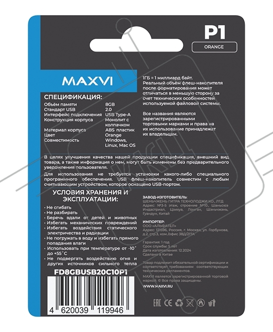 USB флеш-накопитель Maxvi P1 8GB orange (FD8GBUSB20C10P1)