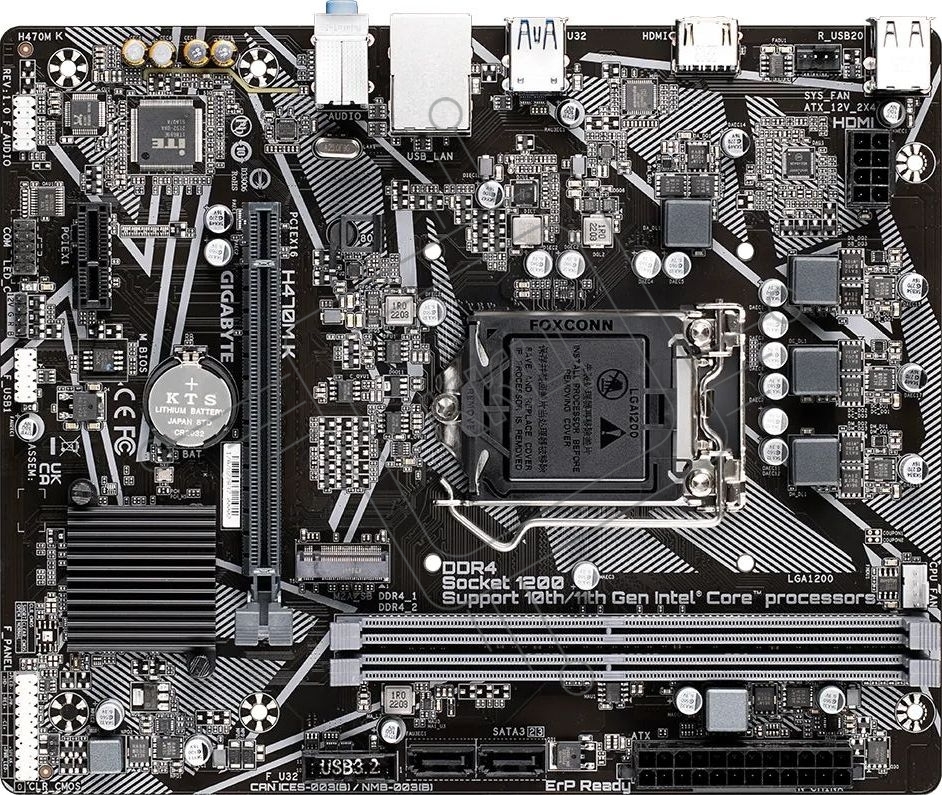 Материнская плата Gigabyte H470M K, LGA1200, Intel H470, 2xDDR4, 2xSATA, 1xM.2, 1xPCIe 3.0 x16, 1xPCIe 3.0 x1, 1xHDMI, 1x1Gb LAN, 2xUSB-A 5Gbps, 4xUSB-A 2.0, 3x3.5 мм, 5.1, mATX