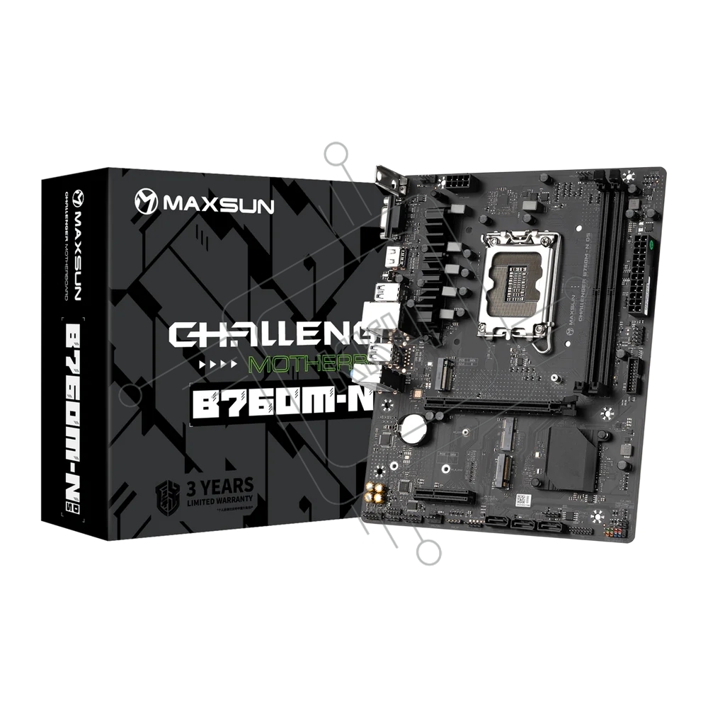 Материнская плата Maxsun Challenger B760M-N D5, LGA 1700, Intel B760, 2xDDR5, 3xSATA, 2xM.2, 1xPCIe 4.0 x16, 1xPCIe x4, 1xVGA, 1xHDMI, 1x 1Gb LAN, 2xUSB-A 2.0, 4xUSB-A 3.2 Gen 1, 5.1, mATX