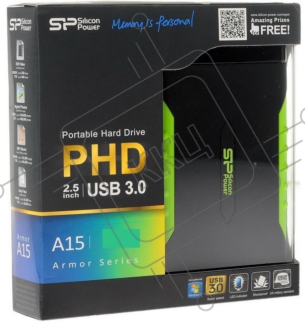 Внешний жесткий диск Silicon Power USB 3.0 2Tb SP020TBPHDA15S3K A15 Armor 2.5" черный/зеленый