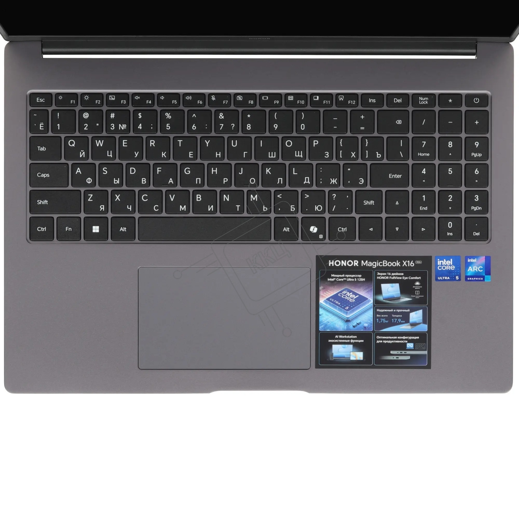 Ноутбук Honor MagicBook X16 2026 BRG-X/16"/IPS/Intel Core Ultra 5 125H/16Gb/512Gb SSD/Intel Arc/Windows 11 Home/серый/1.75kg