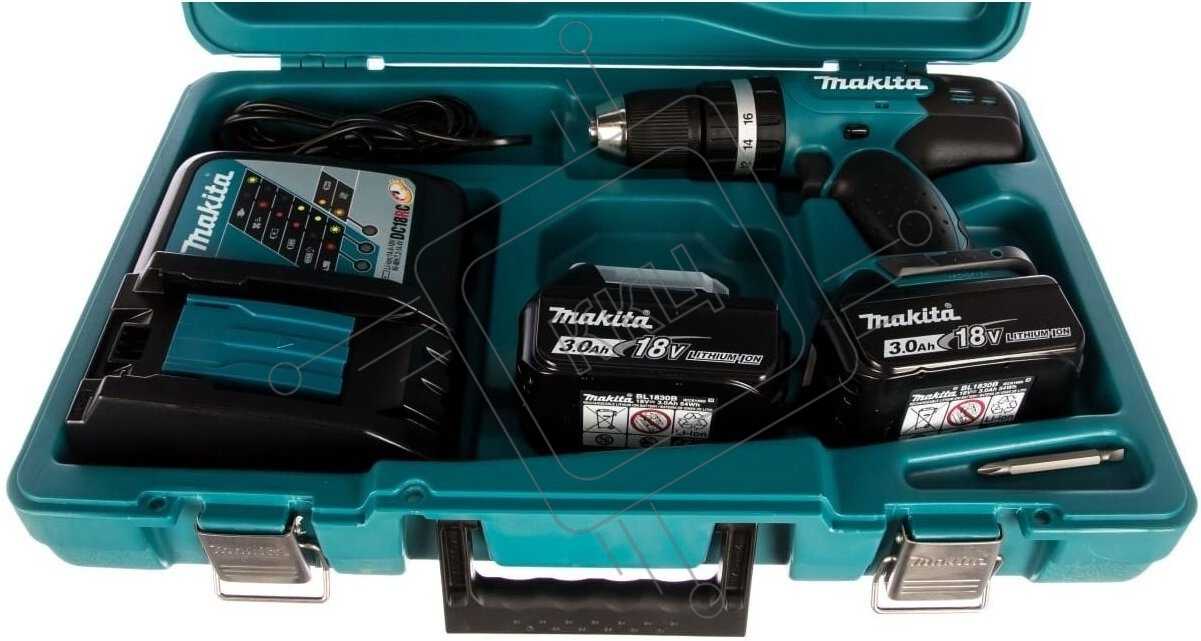 Дрель-шуруповерт Makita DHP453RFE, 18 В, 3 Ач, 42 Нм, щеточный