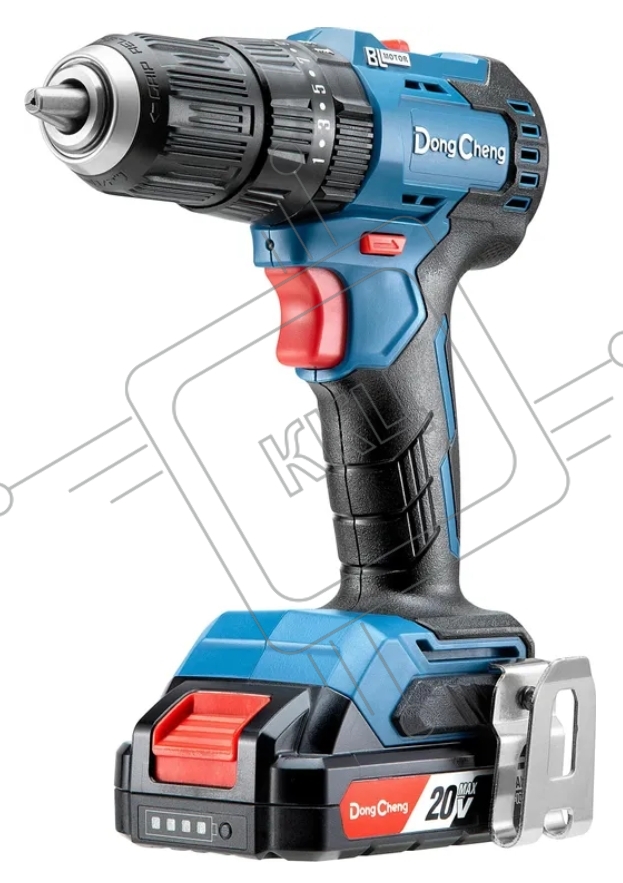 Дрель-шуруповерт DongCheng DCJZ2050i, 20 В, 2 Ач, 50 Нм, бесщеточный, ударный