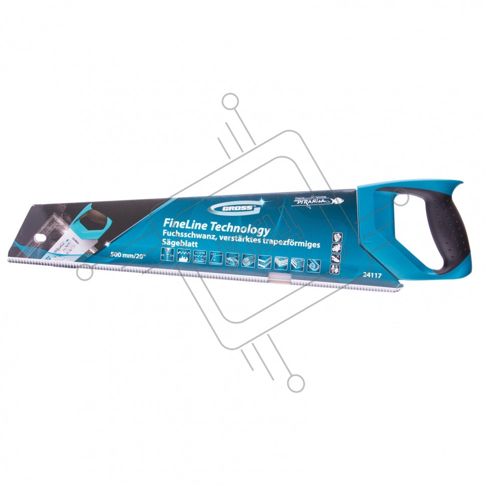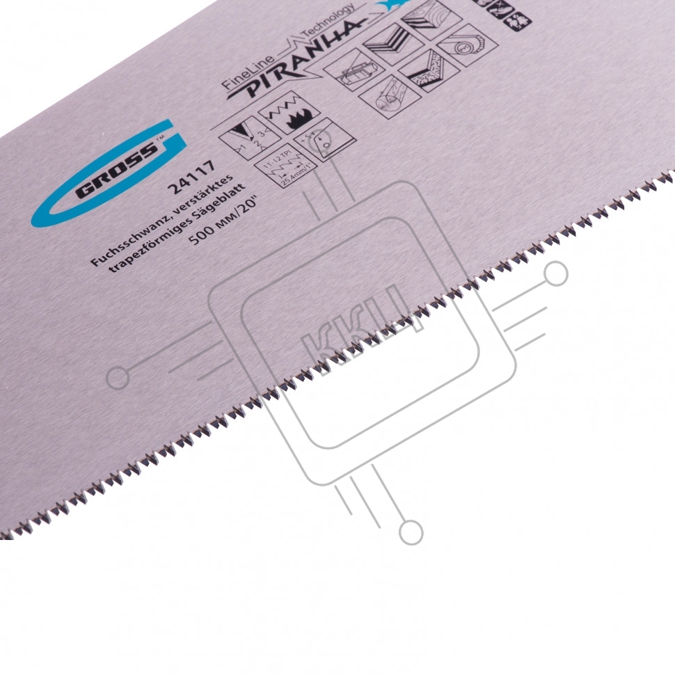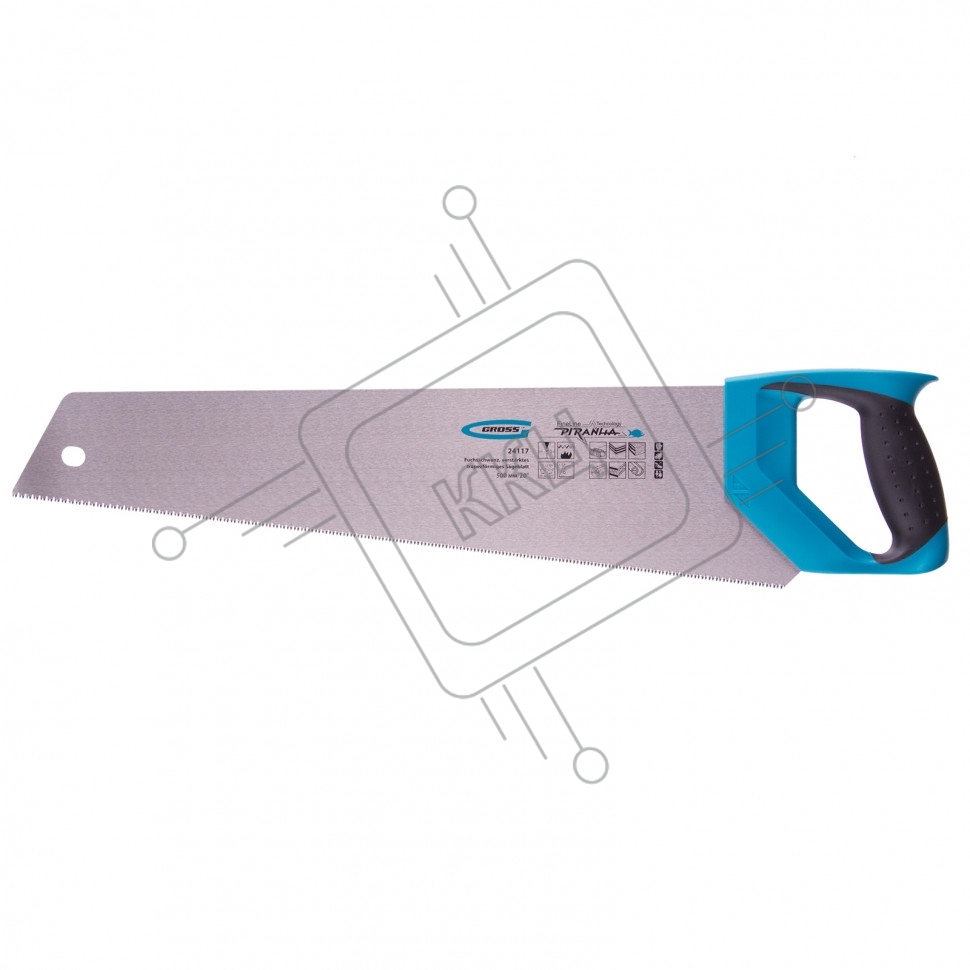 Ножовка по дереву Gross PIRANHA, усил.трапецев.полотно,500 мм,11-12TPI,зуб3D,кален.зуб,2-комп.рук.