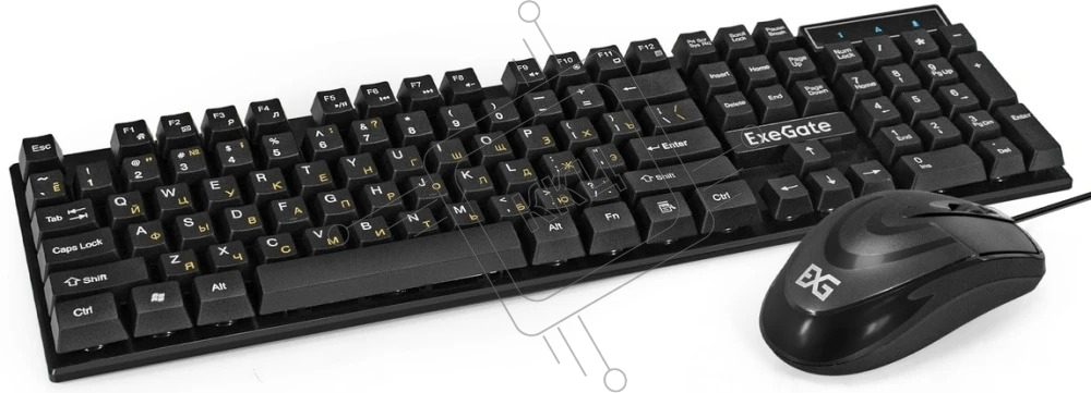 Комплект клавиатура + мышь ExeGate Professional Standard Combo MK110-OEM (клавиатура влагозащищенная 104кл. + мышь оптическая 1000dpi, 3 кнопки и колесо прокрутки; USB, длина кабелей 1.5м, черный, RTL)