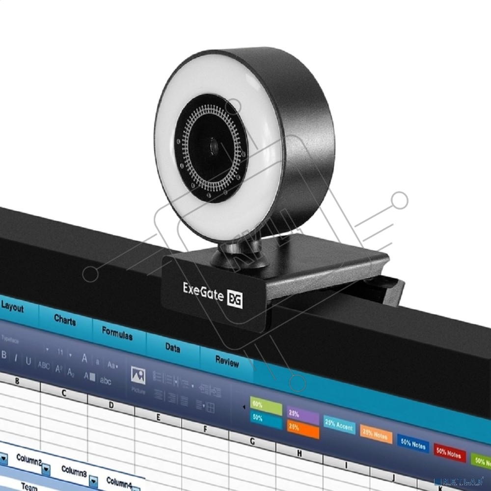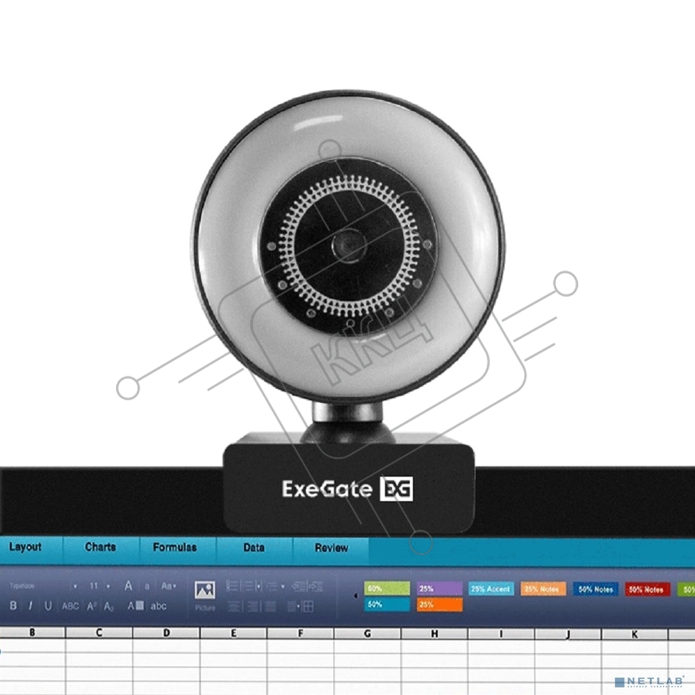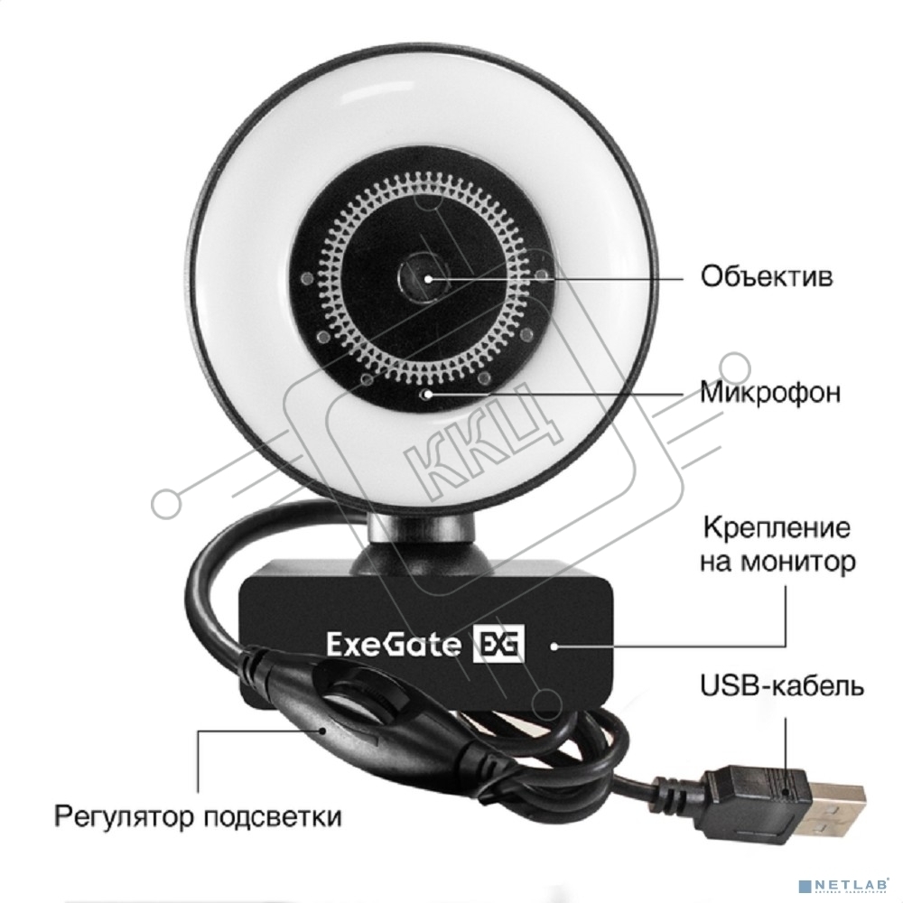 Веб-камера с подсветкой ExeGate eStudio EW-721 2K AF (5Мп, 2560х1440, 1440P, 30fps, автоматический фокус, подсветка, 4-линзовый объектив, стерео микрофон с шумоподавлением, универсальное крепление, отверстие под штатив, USB, кабель 1,5 м, Windows 7/8/10/1