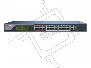 Неуправляемый коммутатор. 24 RJ45 100M PoE с грозозащитой 6кВ, 1 Uplink 1000М, 1 Uplink 1000М SFP, бюджет PoE 230Вт, CAT5e, пропускная способность 8.8 Гб/с, стандарты PoE IEEE802.3af, IEEE802.3at, 100-240 VAC, 4A, -10...+55C