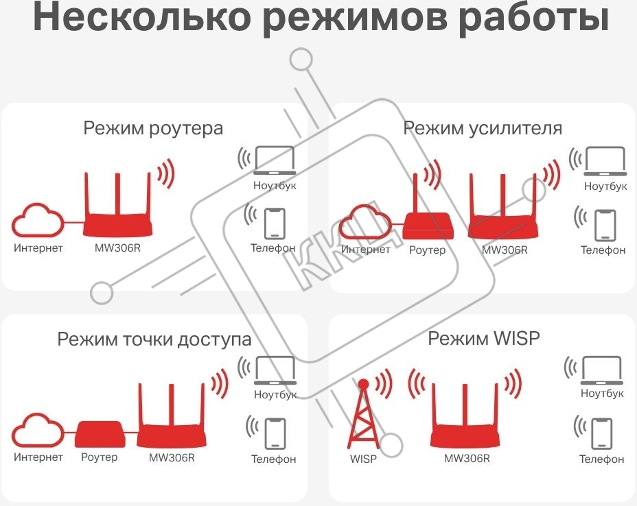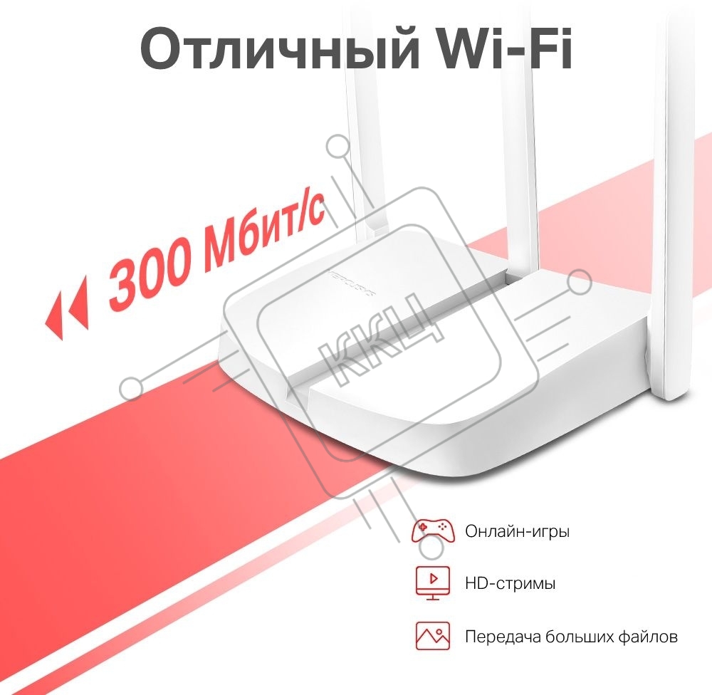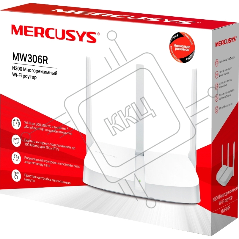 Роутер Mercusys MW306R 300 Mbps Multi-Mode Wireless N Router, 3 × Fixed External Antennas, 3× 10/100 LAN Port, 1× 10/100 WAN Port, 4 in 1- Access Point/Router/Range extender/WISP Mode, WPS/Reset Button, Parental Controls, Guest Network