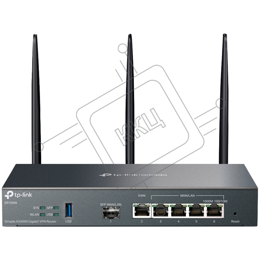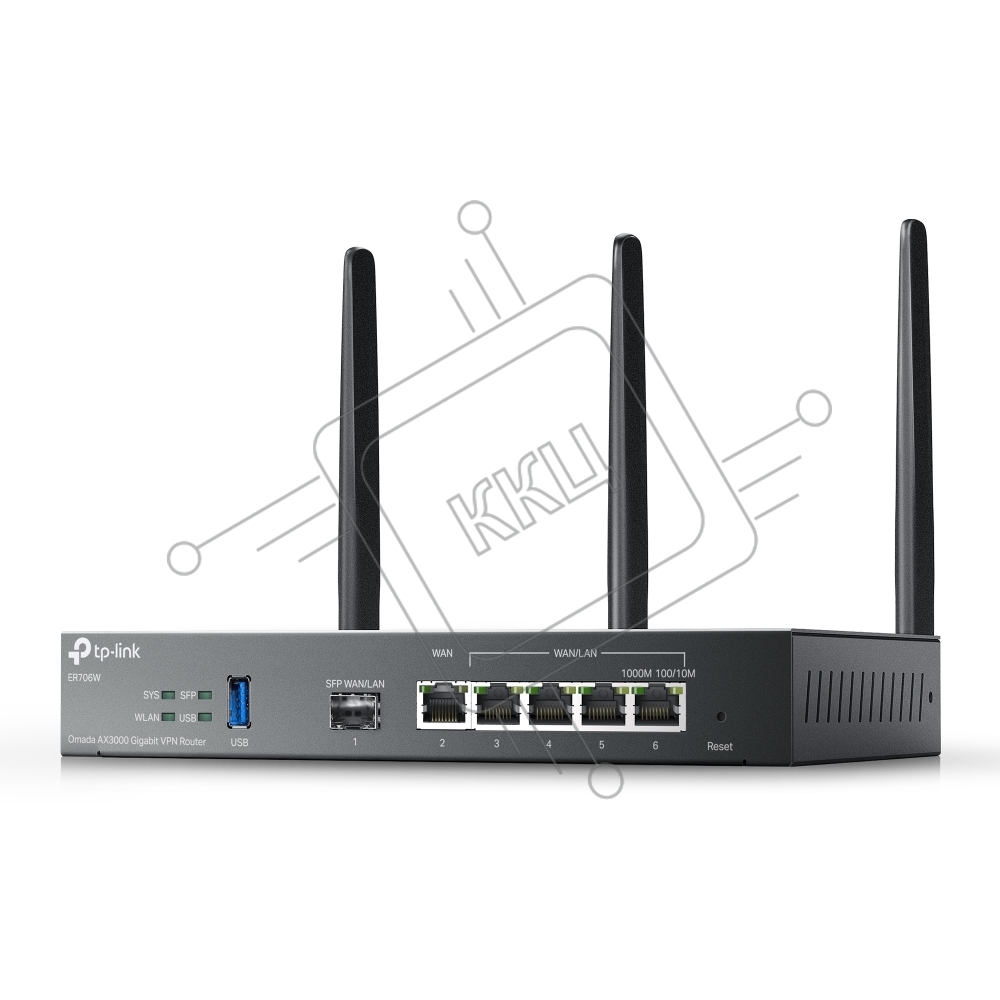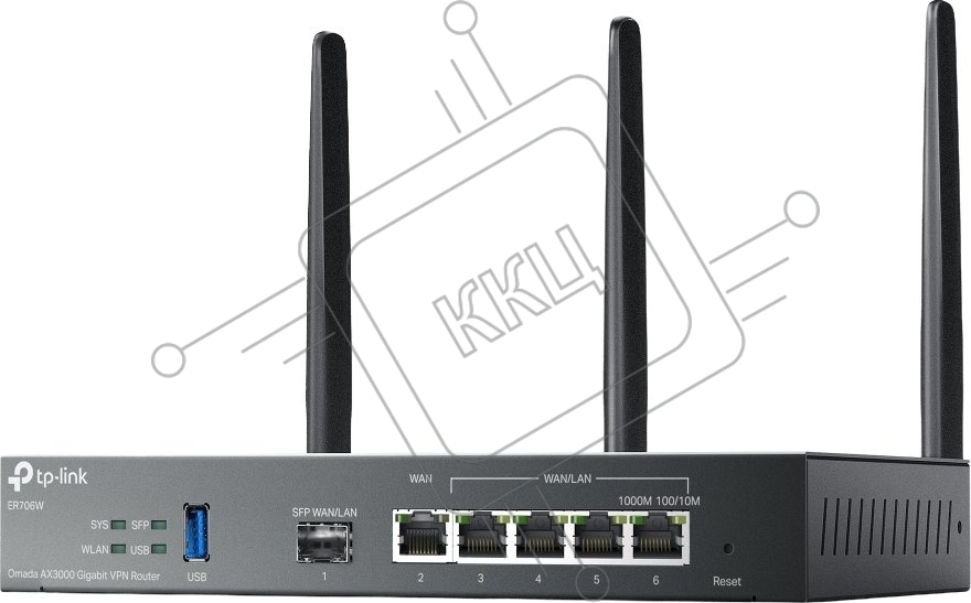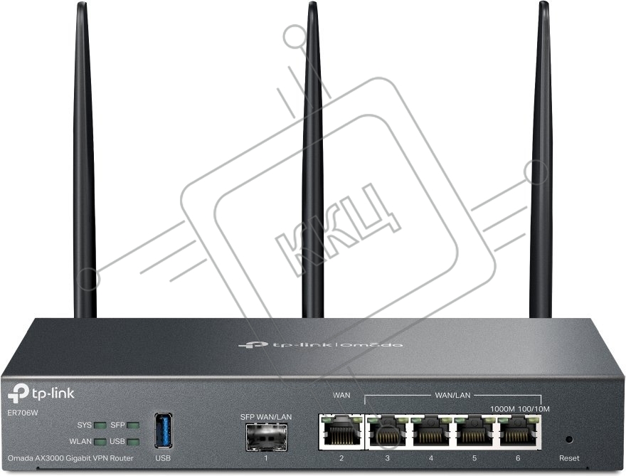 VPN-маршрутизатор TP-Link ER706W Omada с гигабитными портами и поддержкой Wi-Fi AX3000, 1 гиг. SFP WAN/LAN, 1 гиг. RJ45 WAN, 4 гиг. RJ45 WAN/LAN, USB 3.0, до 574 М/с на 2,4 ГГц + до 2402 М/с