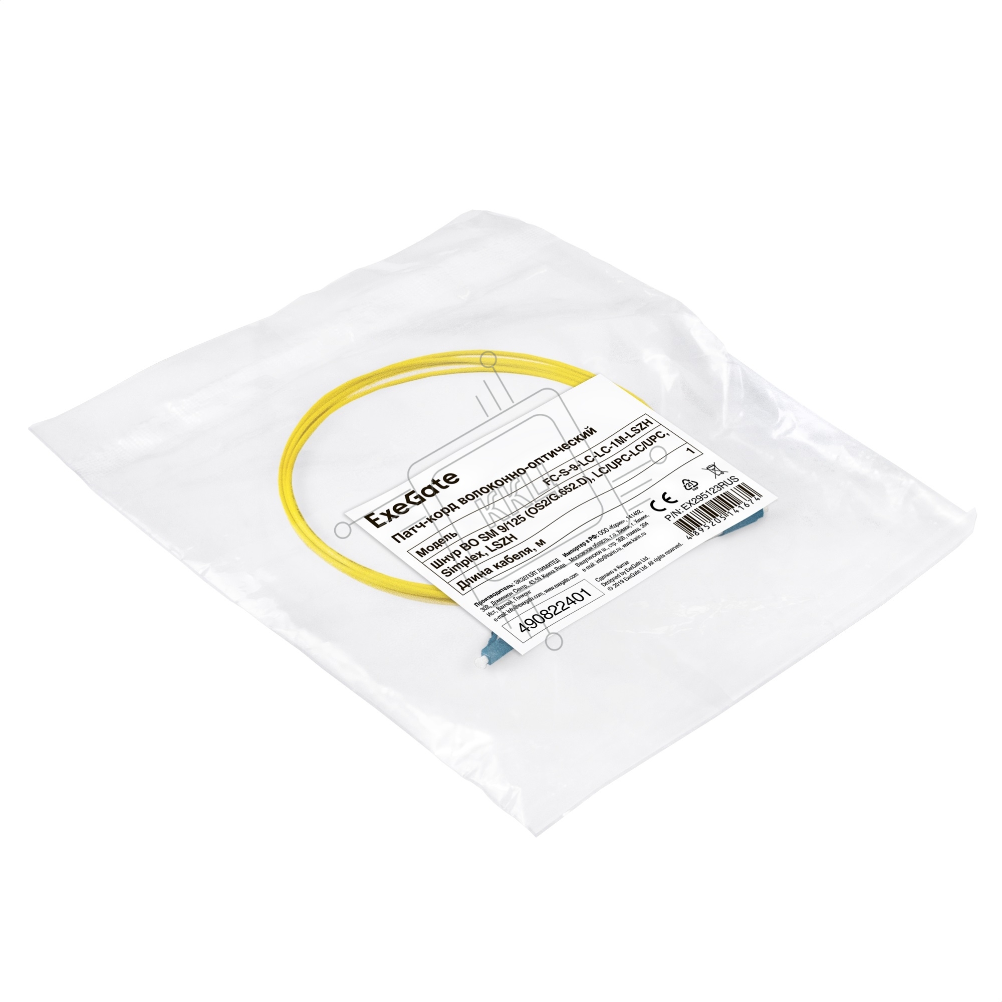 Патч-корд волоконно-оптический ExeGate FC-S-9-LC-LC-1M-LSZH (Шнур ВО SM 9/125 (OS2/G.652.D), LC/UPC-LC/UPC, Simplex, LSZH, 1м)