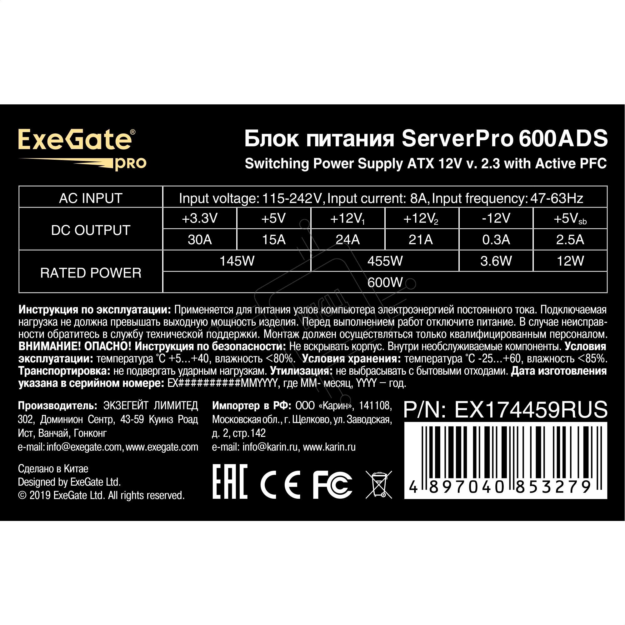 - Код производителя: EX174459RUS