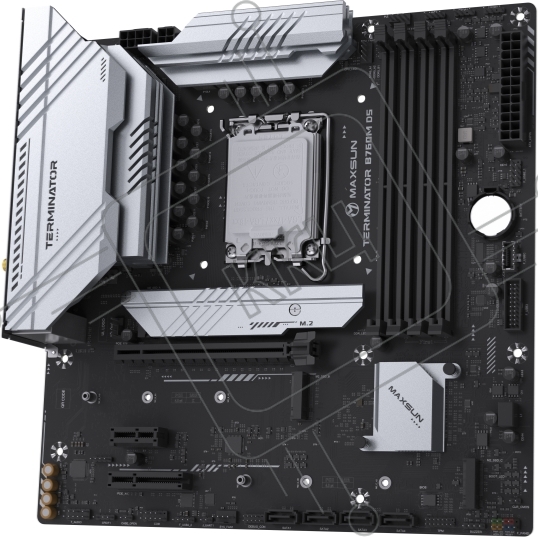 Материнская плата Maxsun Terminator B760M D5 WIFI, LGA 1700, Intel B760, 4xDDR5, 4xSATA, 3xM.2, 1xPCIe 5.0 x16, 1xPCIe x4, 1xPCIe x1, 1xHDMI, 1xDP, 1x 2.5Gb LAN, 6xUSB 2.0, 2xUSB 3.2 Gen 2, 3x3.5 мм, 5.1, mATX