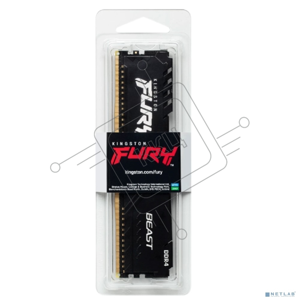 Оперативная память Kingston FURY Beast Black, DDR4, 16GB (1x16GB), 3200 MHz, CL16, с радиатором, чёрный