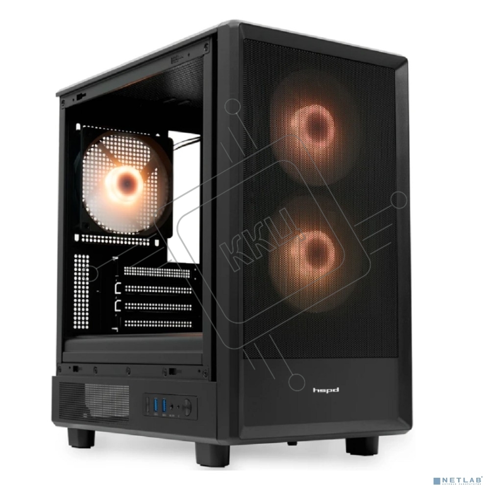 Компьютерный корпус HSPD M310, Mesh Mini-tower, черный, TG, 0.4 SPCC, 3x120мм ARGB mATX, mITX 180/280/160мм 1x2.5", 1x3.5", 4xPCI 2xUSB-A 3.0 452x277x418мм