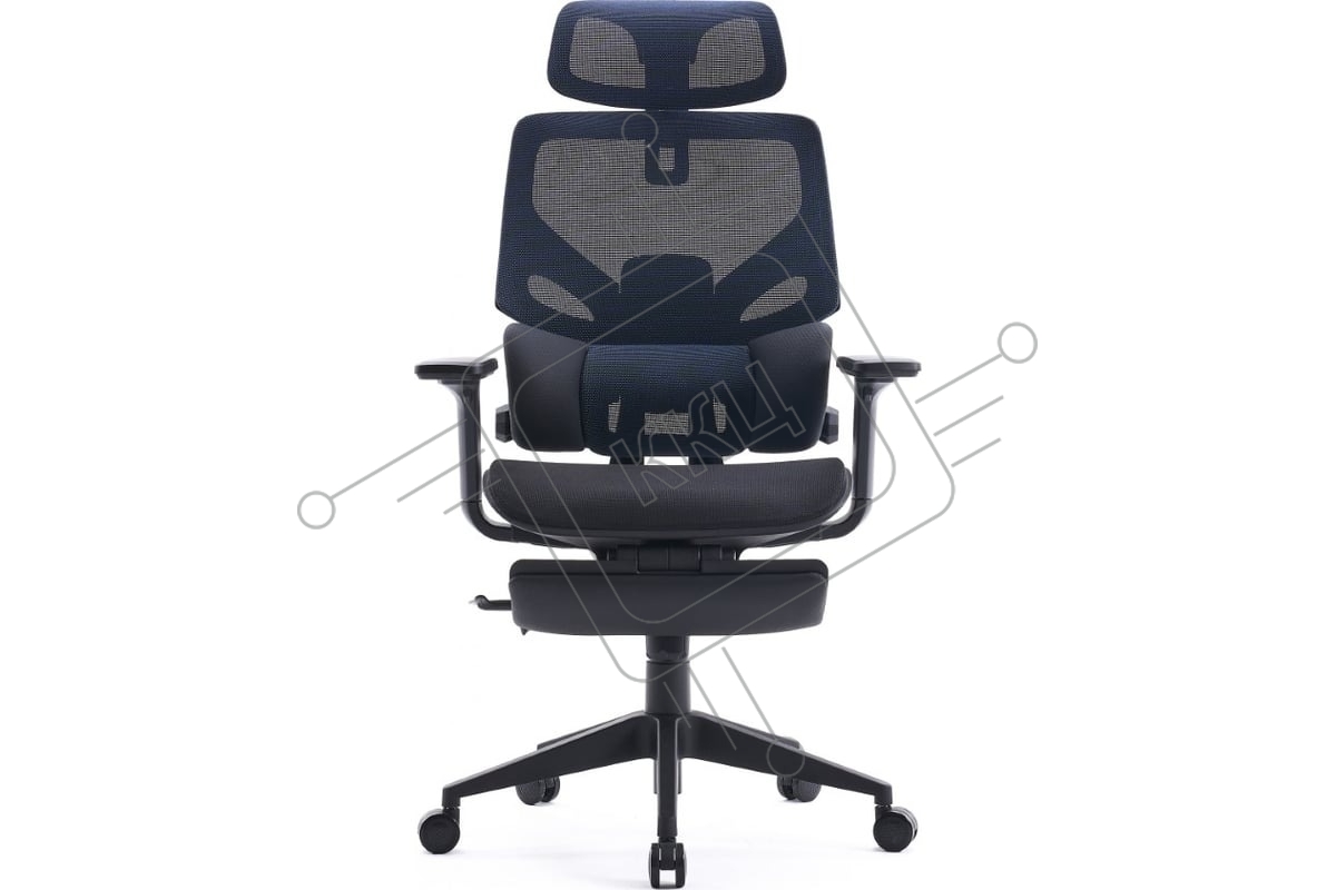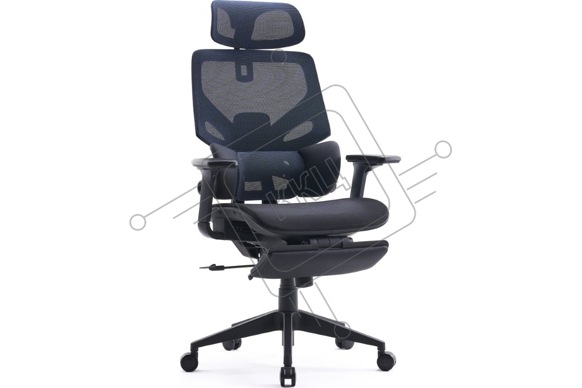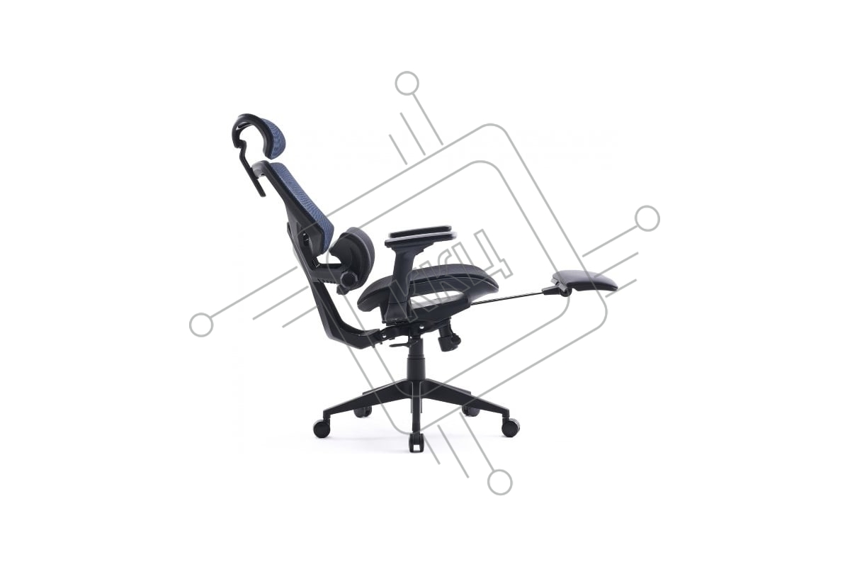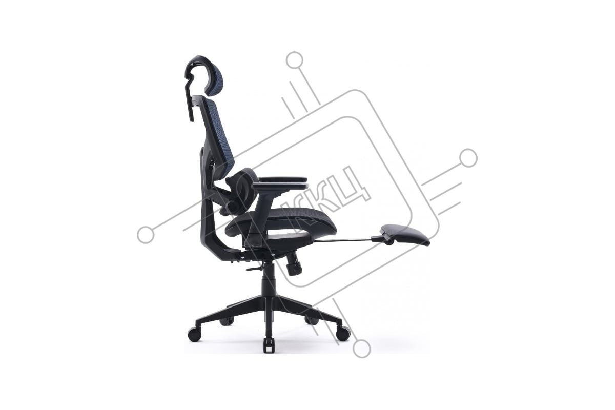 Кресло офисное Cactus CS-CHR-MC01-BLBK синий, сиденье черный, сетка/ткань, с подголов. крестов. пластик, подст. для ног