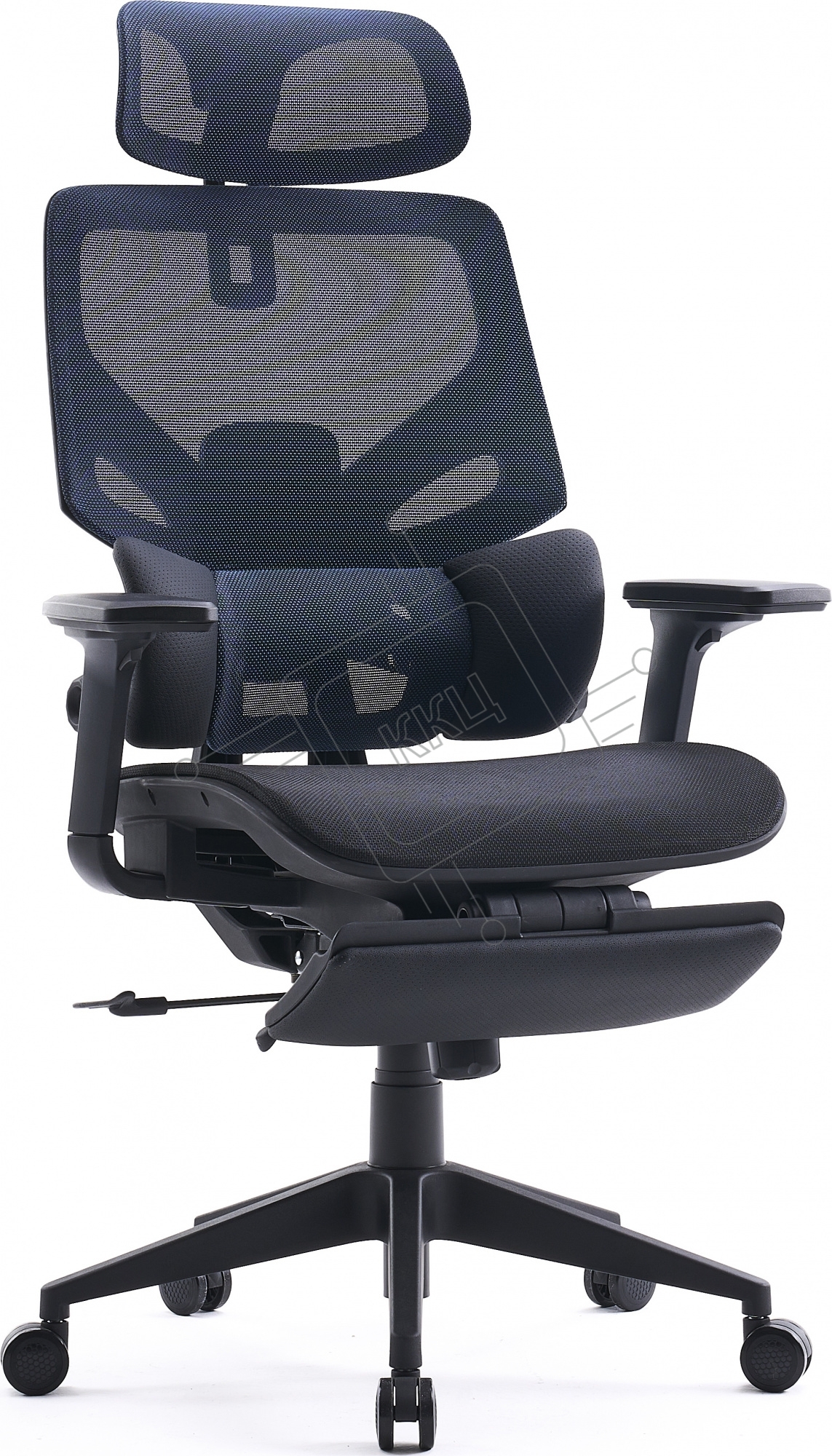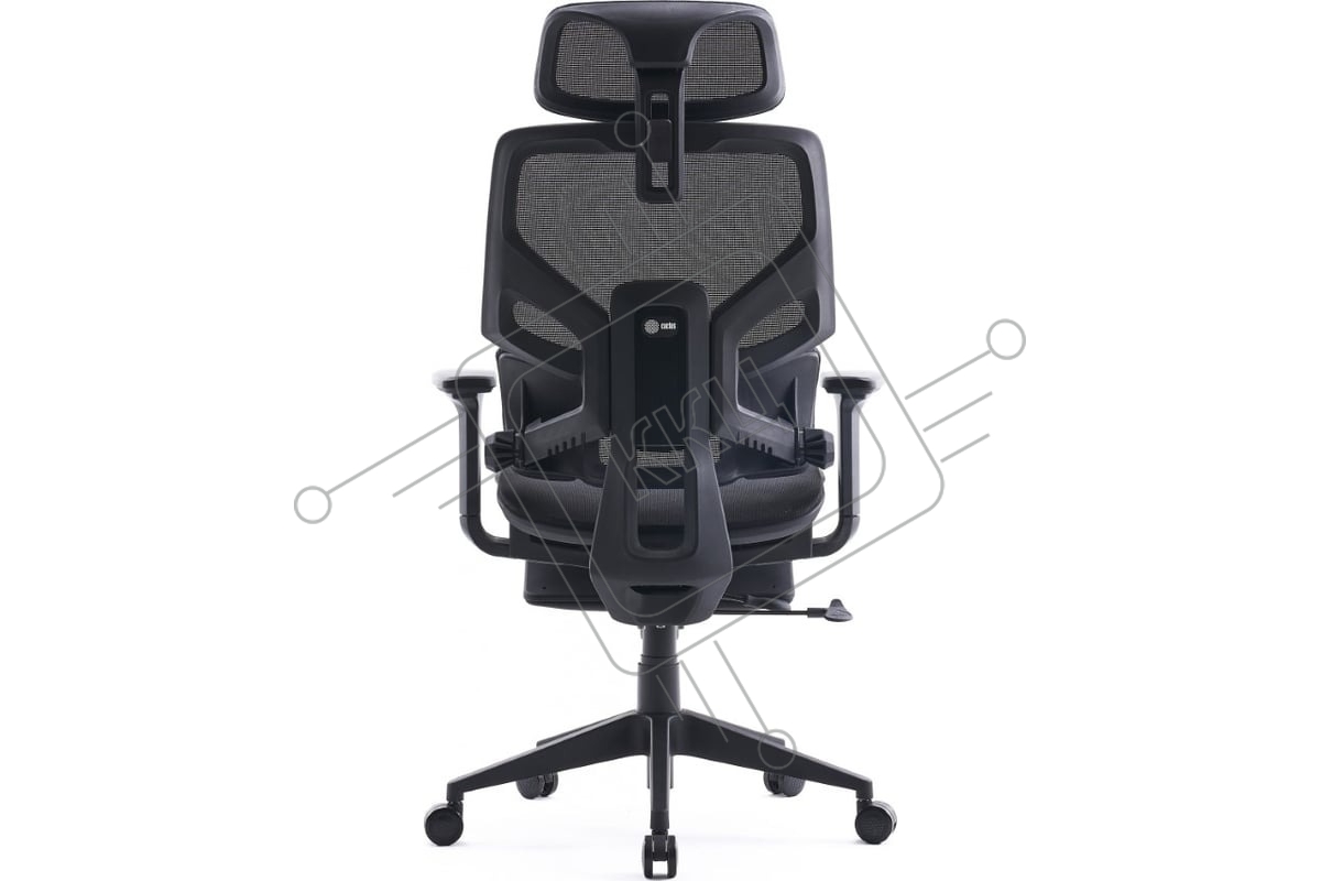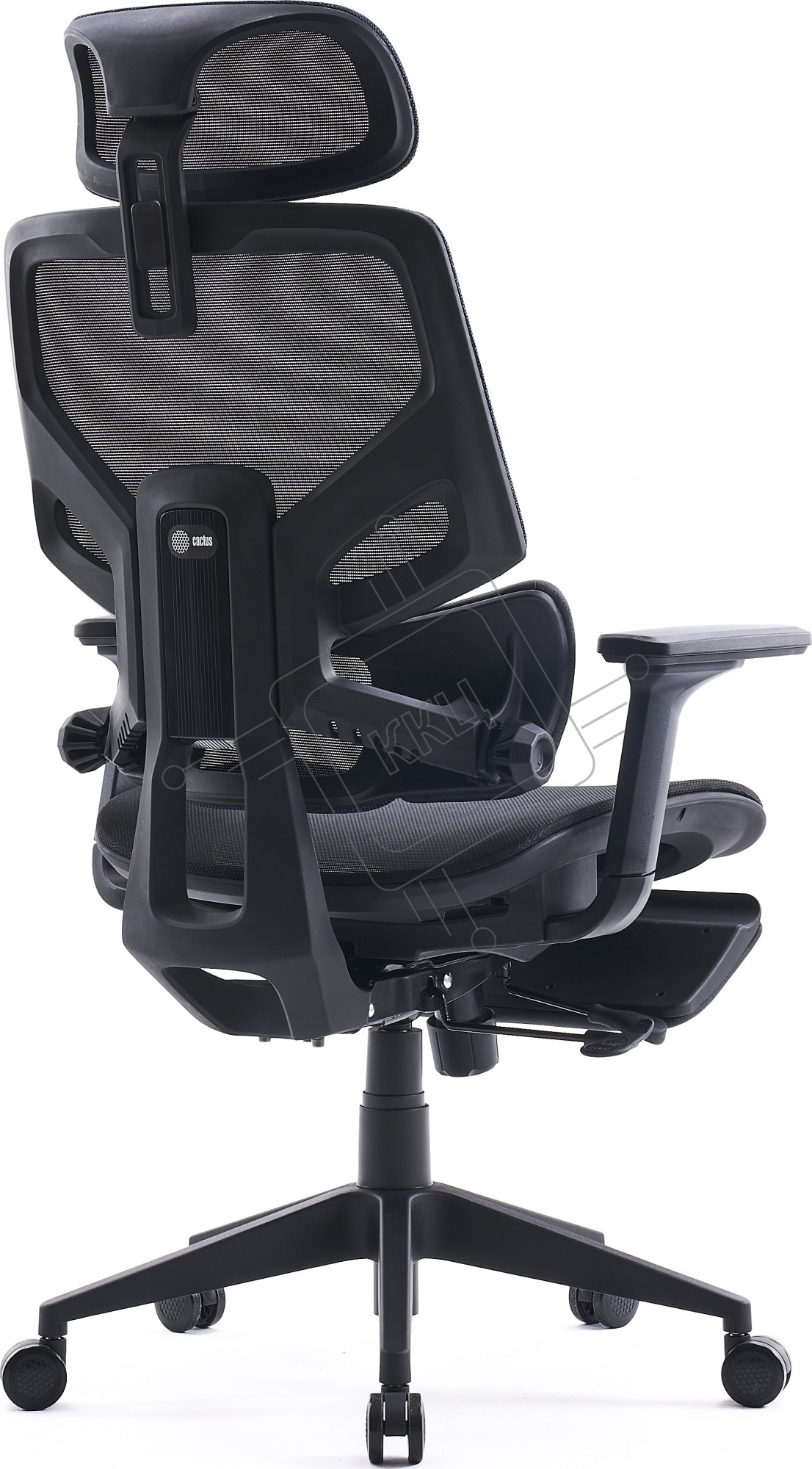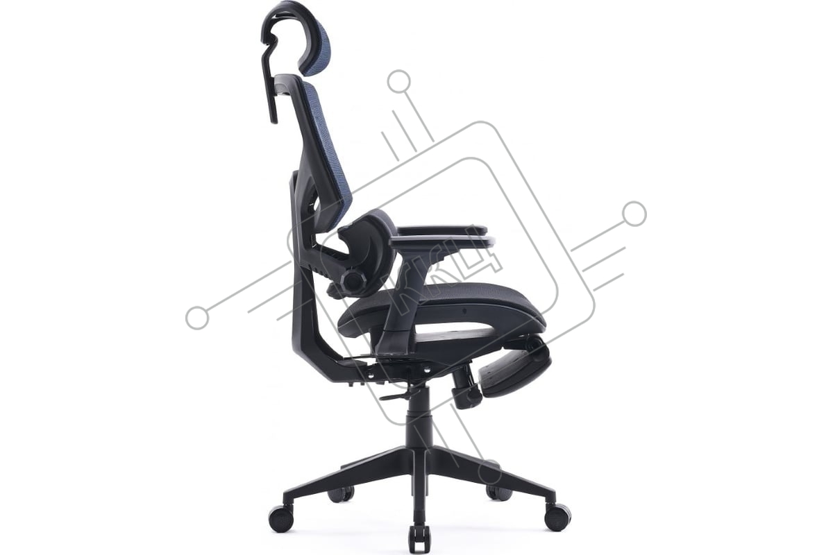 Кресло офисное Cactus CS-CHR-MC01-BLBK синий, сиденье черный, сетка/ткань, с подголов. крестов. пластик, подст. для ног
