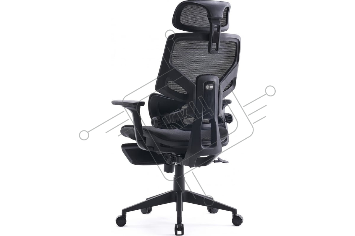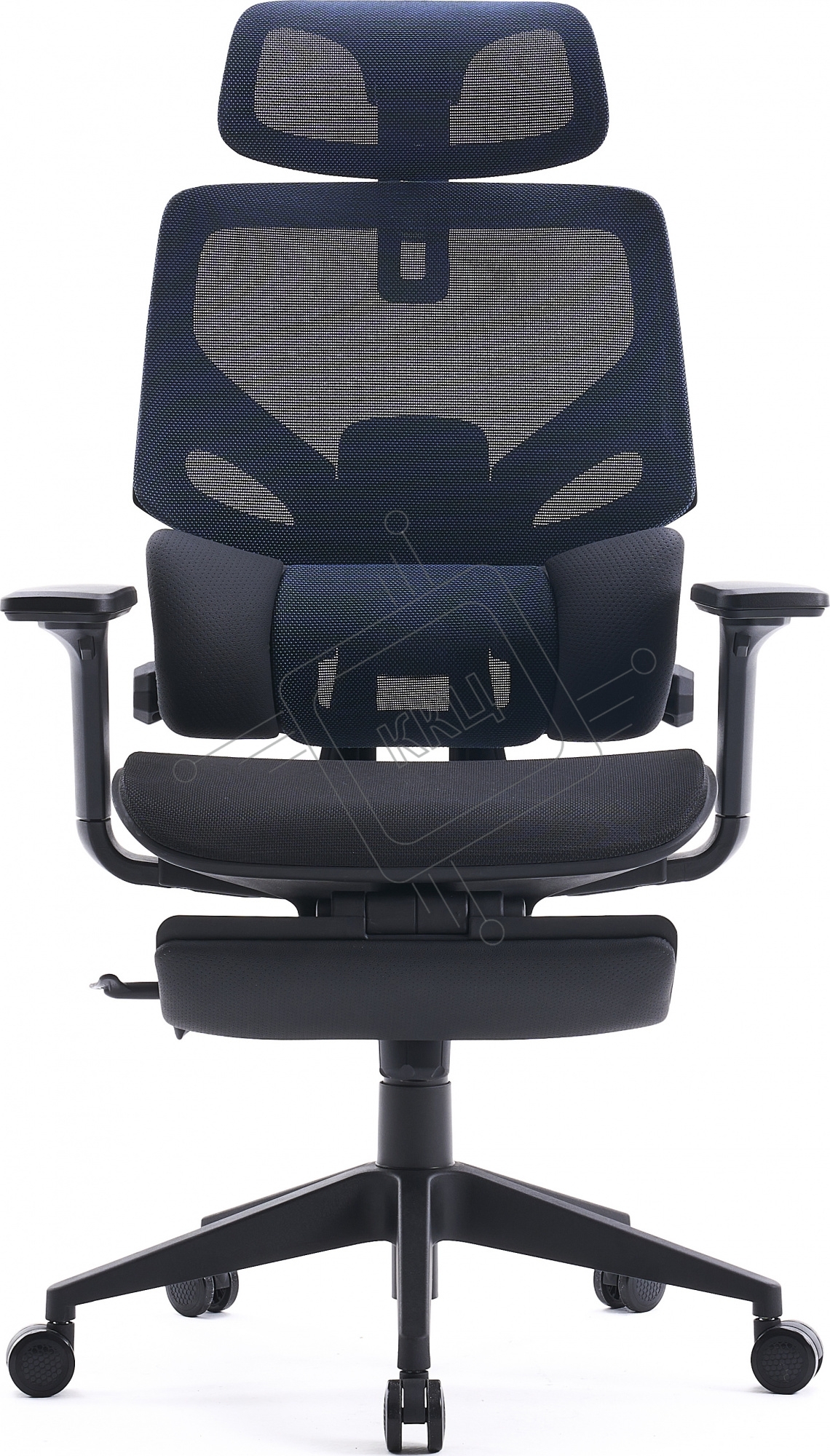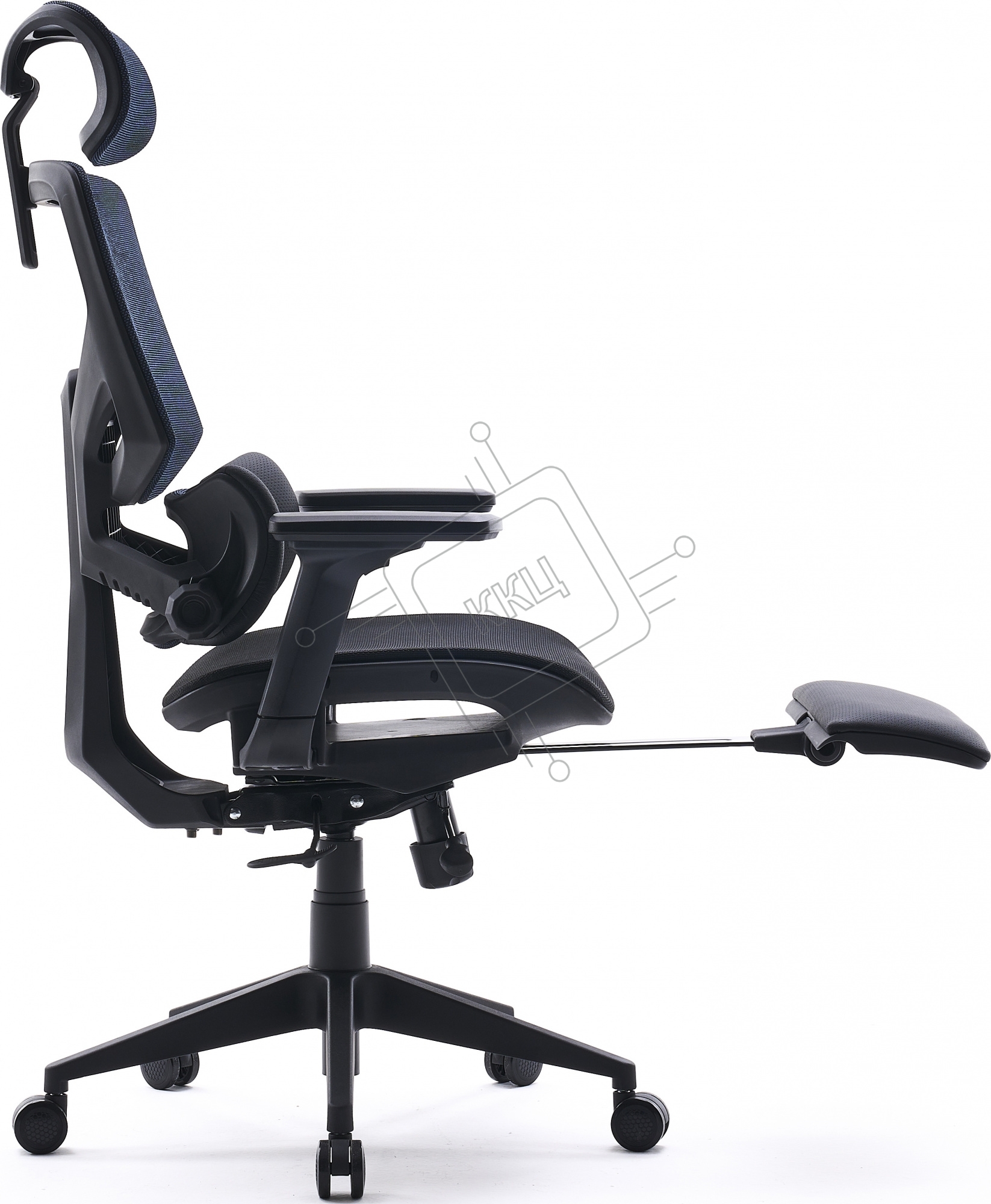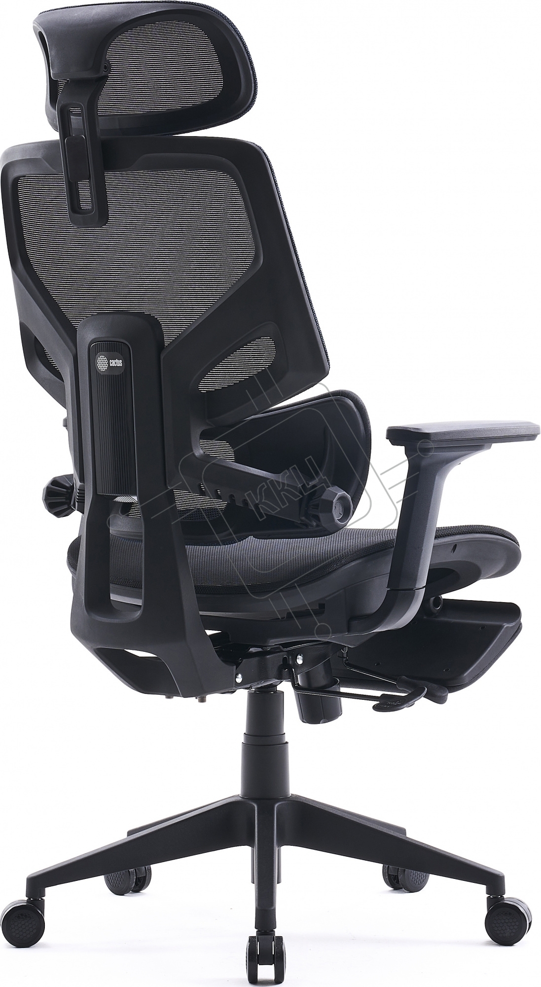 Кресло офисное Cactus CS-CHR-MC01-BLBK синий, сиденье черный, сетка/ткань, с подголов. крестов. пластик, подст. для ног