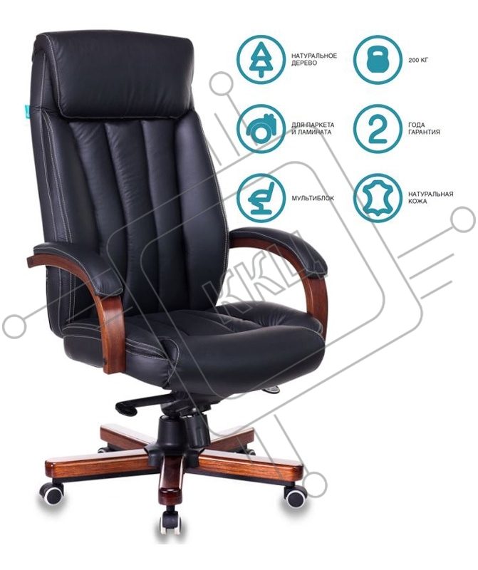 Кресло руководителя Бюрократ T-9922WALNUT/BLACK черный, кожа, крестовина дерево