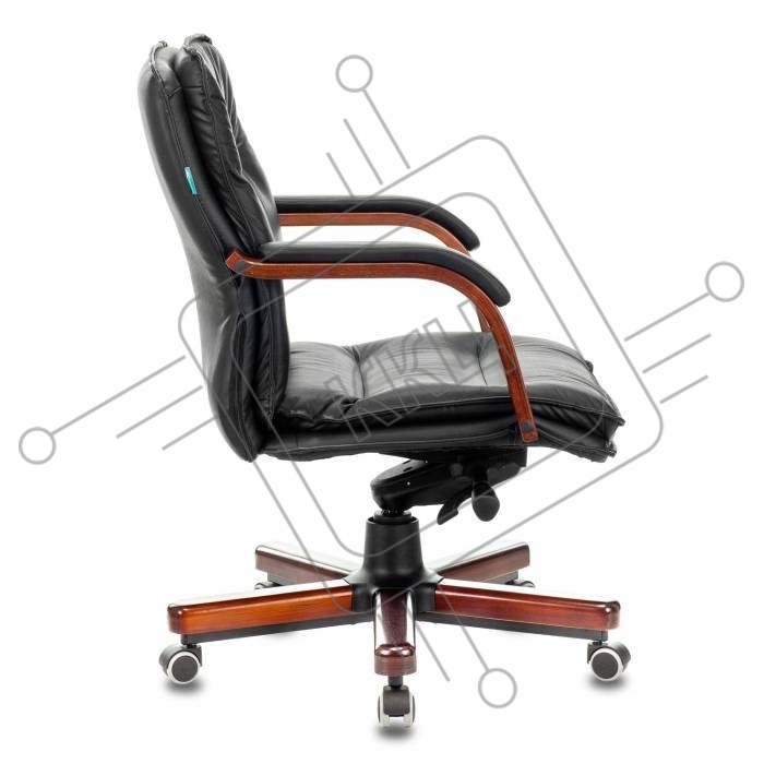 Кресло руководителя Бюрократ T-9927WALNUT-LOW/BL черный, кожа, низкая спинка, крестовина дерево