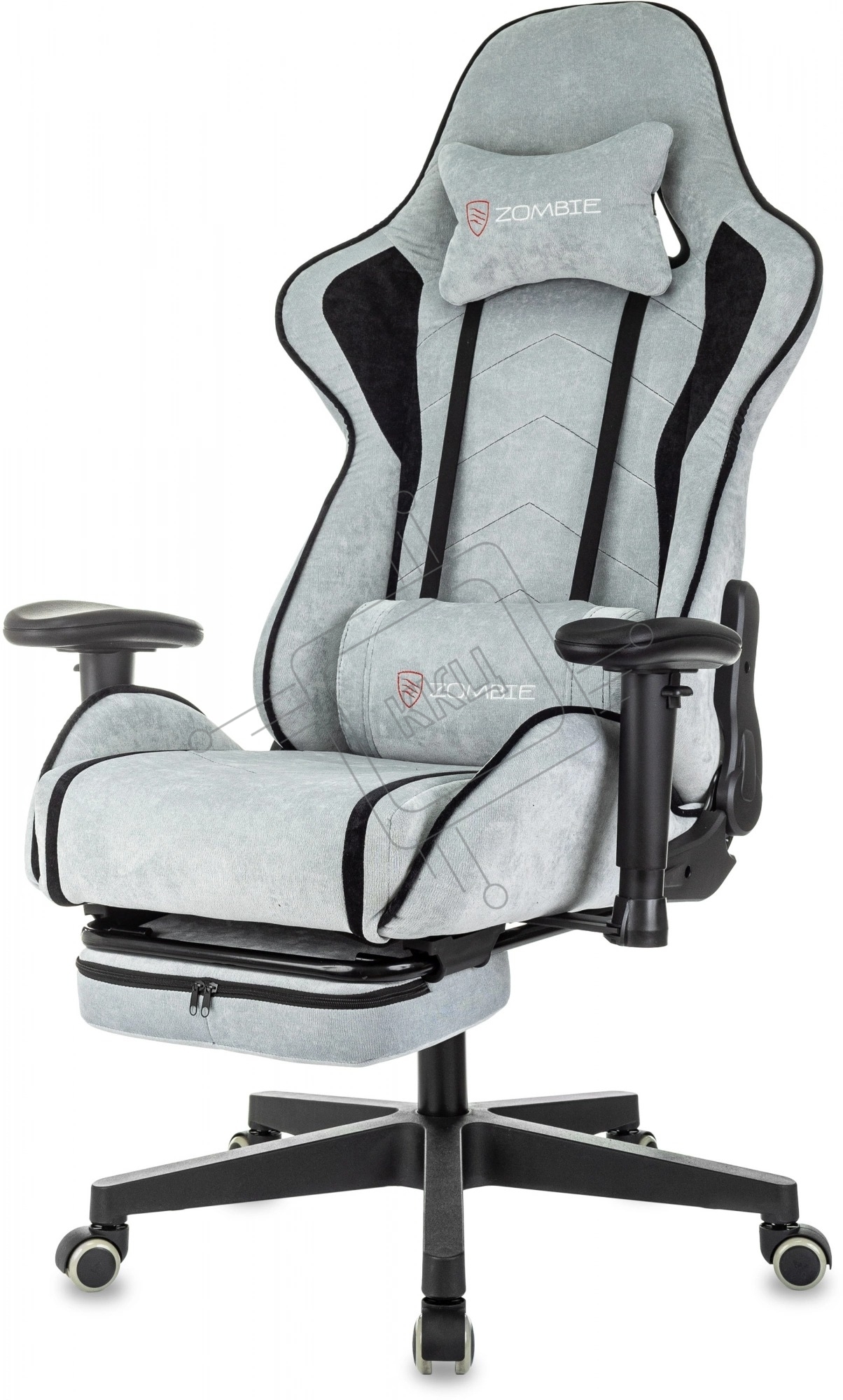 Кресло игровое Zombie Drift/F серо-голубой/черный, крестов. пластик, подст. для ног