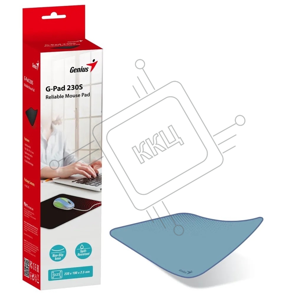 Коврик для мыши Genius G-Pad 230S. Нескользящая резиновая основа с микротекстурированной гладкой поверхностью. Размер: 230 x 2.5 x 190 мм. серый