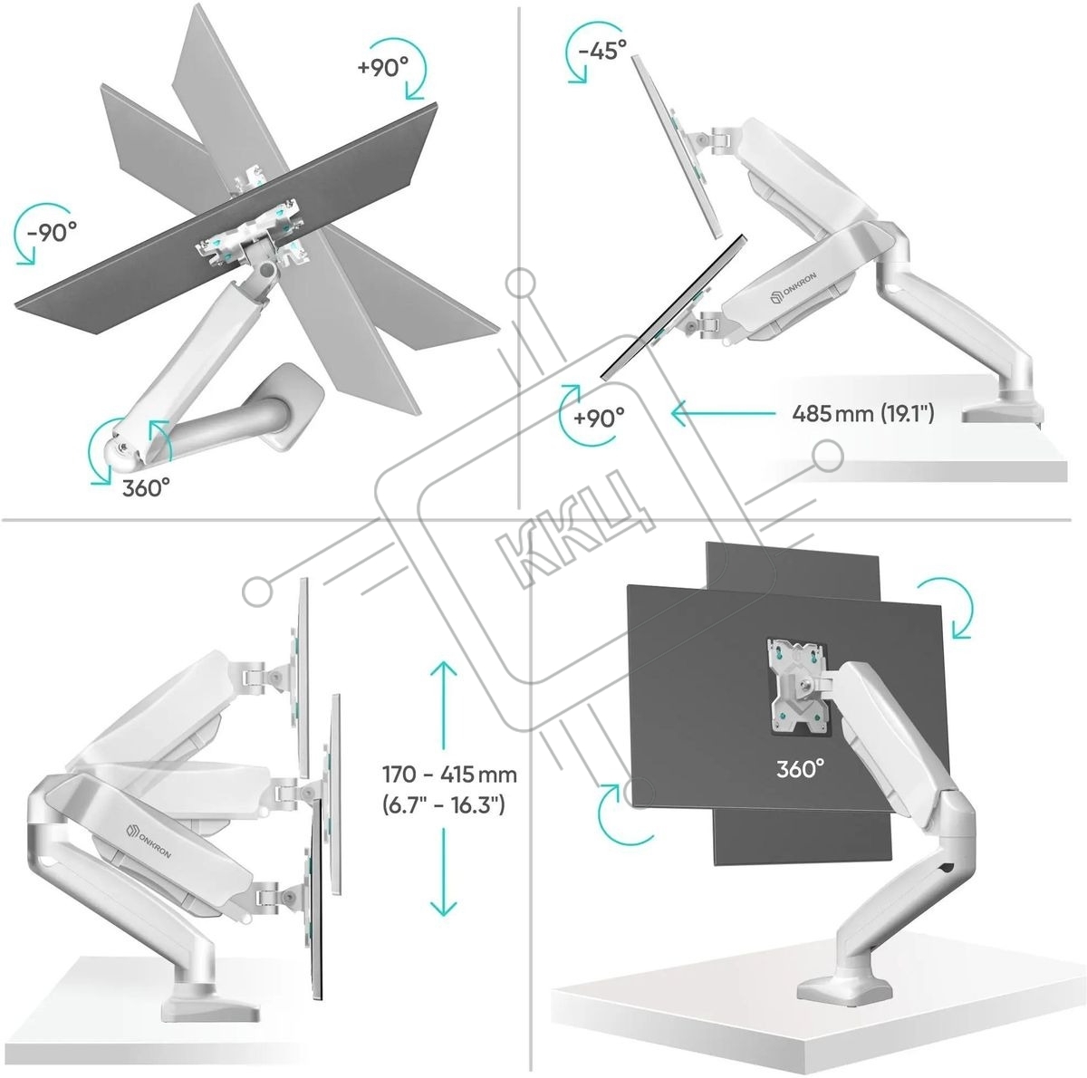 Кронштейн (держатель) ONKRON G80 для монитора 13"-32" дюймов настольный, белый