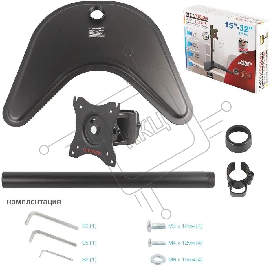 Кронштейн для мониторов Arm Media LCD-T51 черный 15"-32" макс.10кг настольный поворот и наклон верт.перемещ.