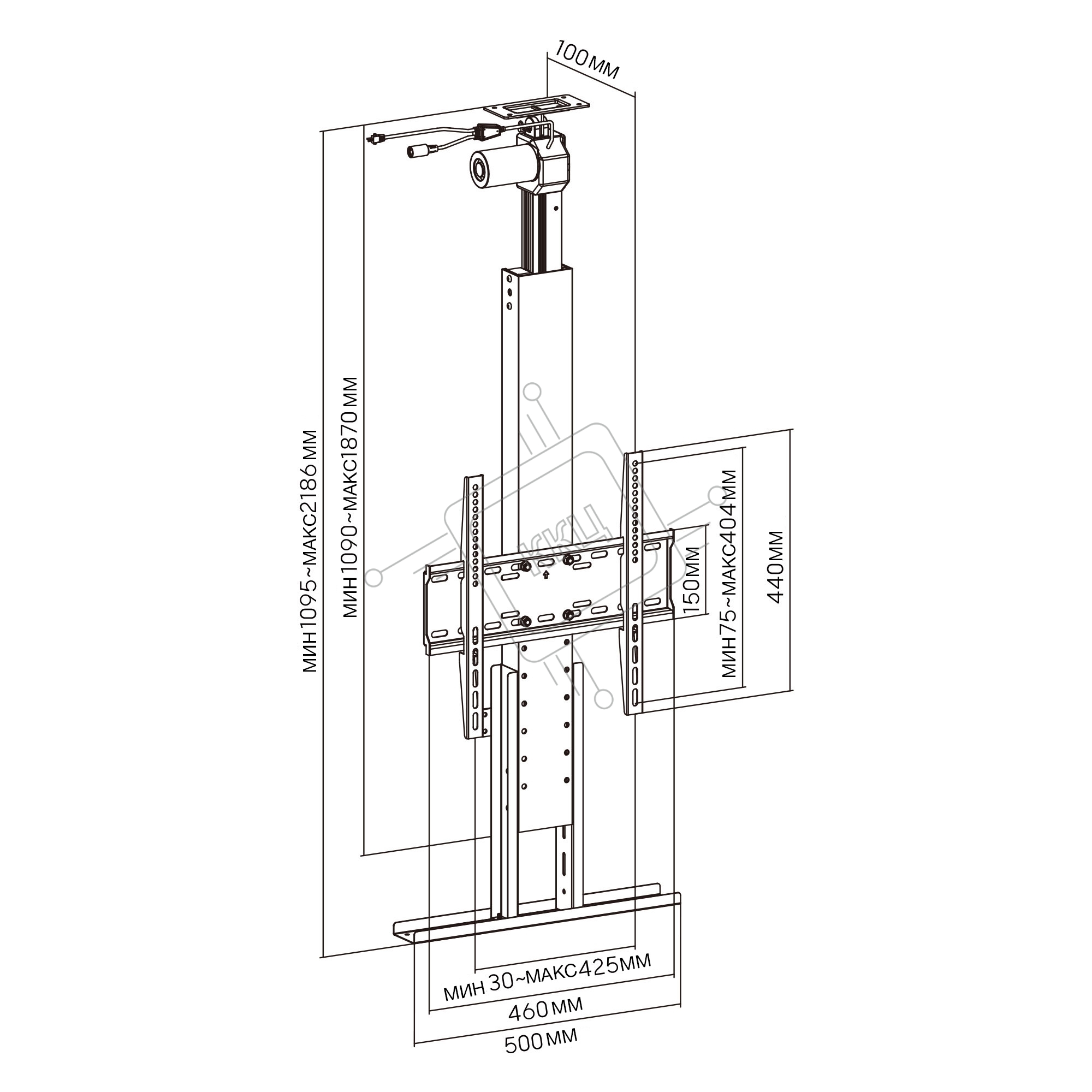 Кронштейн для телевизора Cactus CS-STM-7844 черный 32"-55" макс.45кг напольный (моторизованный лифт)