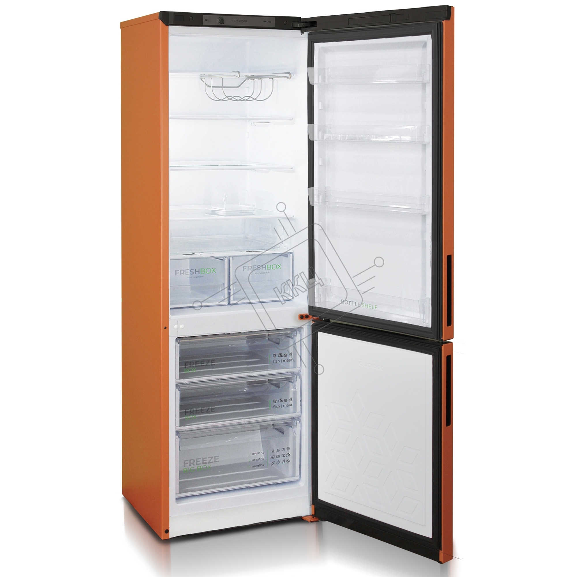 Холодильник Бирюса T6127 оранжевый двухкамерный 245/100л морозилка снизу