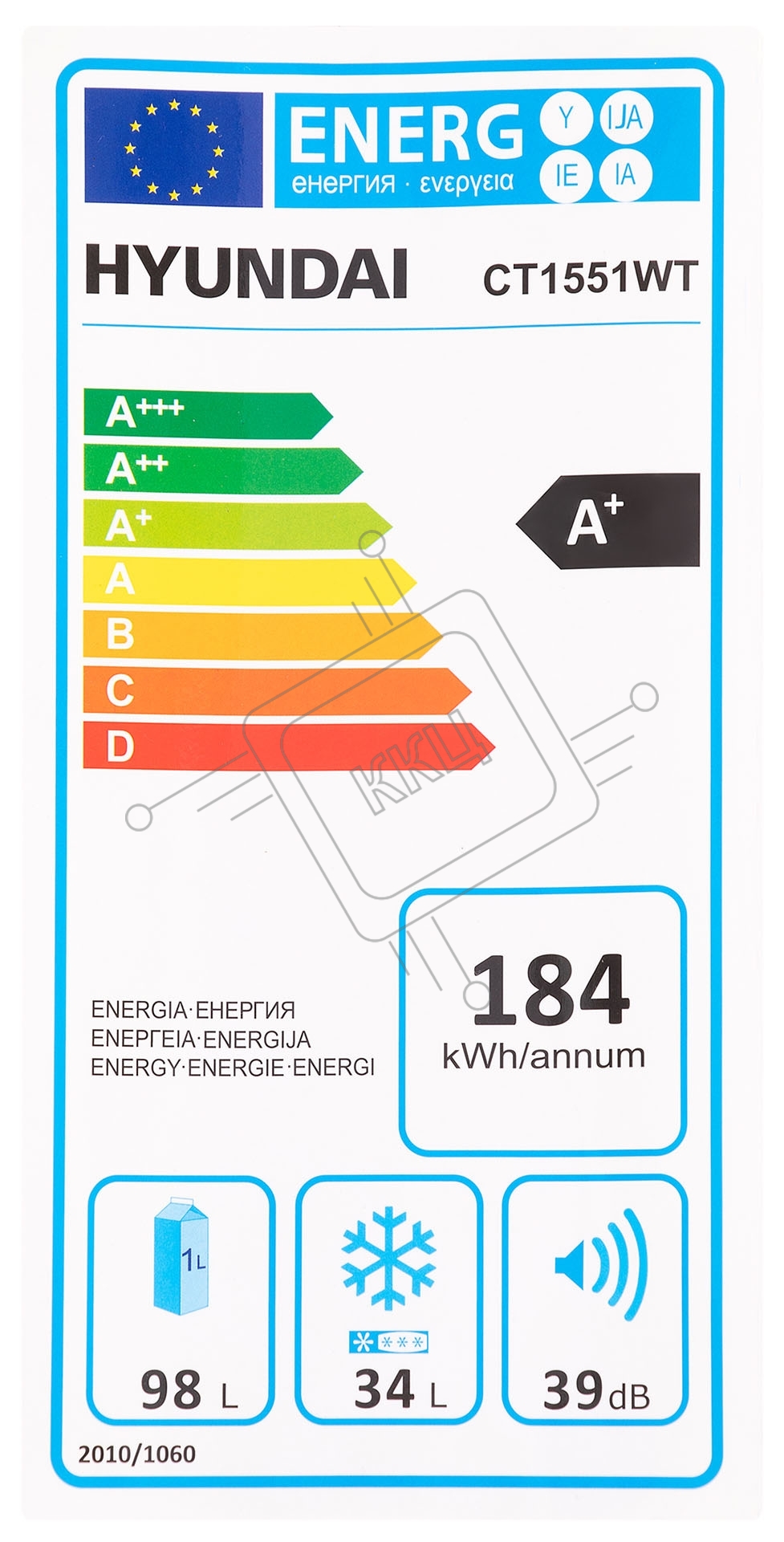 Холодильник Hyundai CT1551WT белый двухкамерный 98/33л морозилка сверху