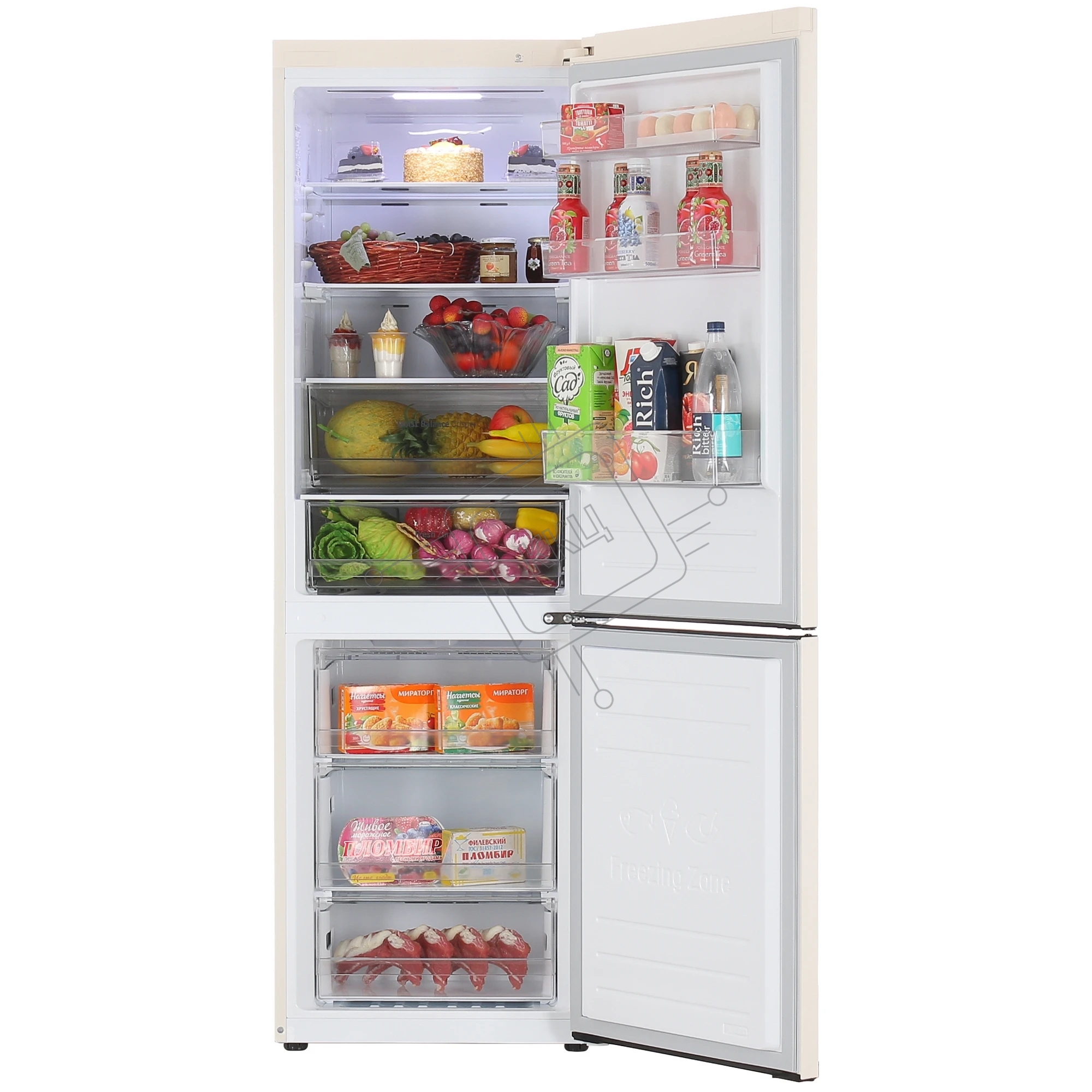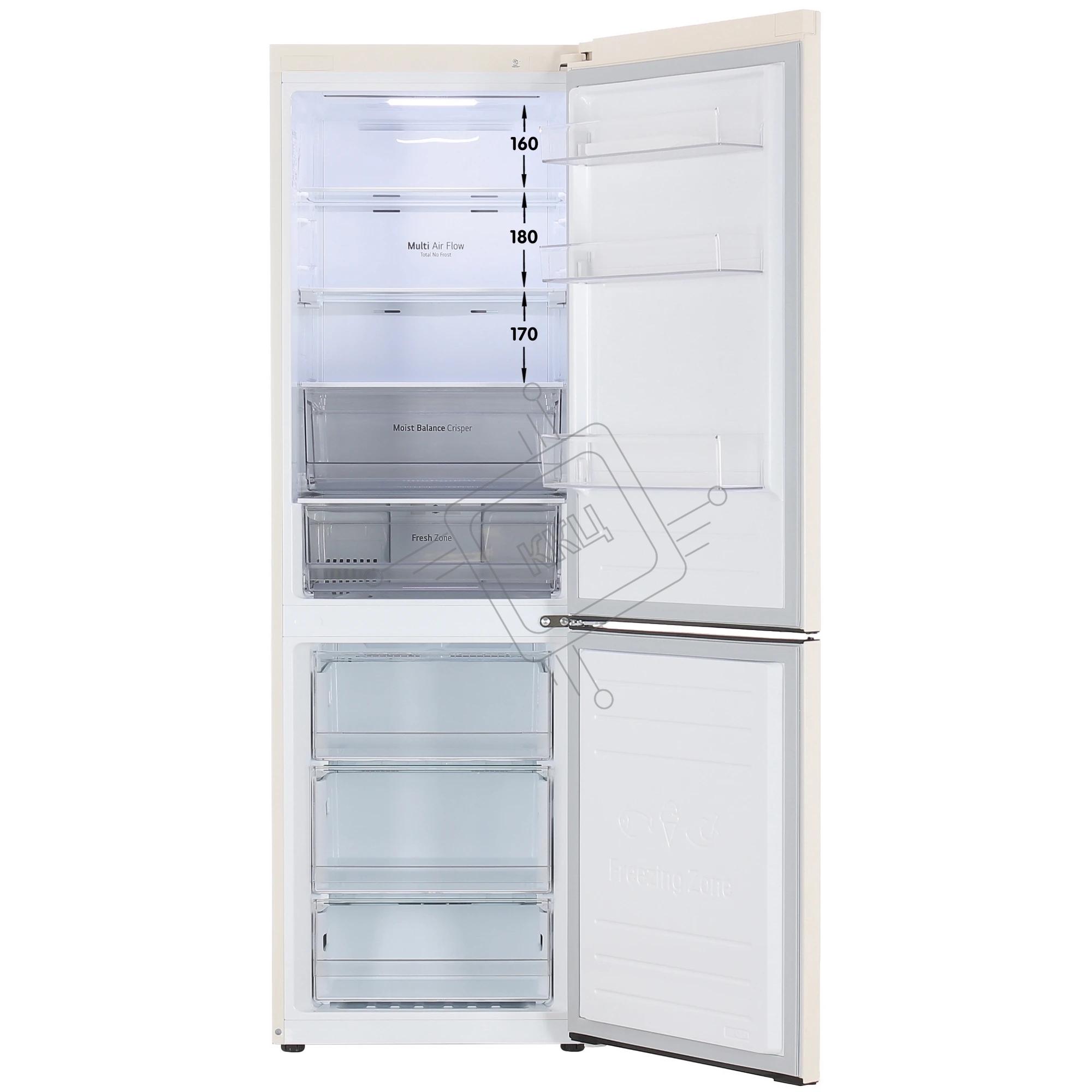 Холодильник LG GC-B459MEWM бежевый двухкамерный 234/107л морозилка снизу, No Frost